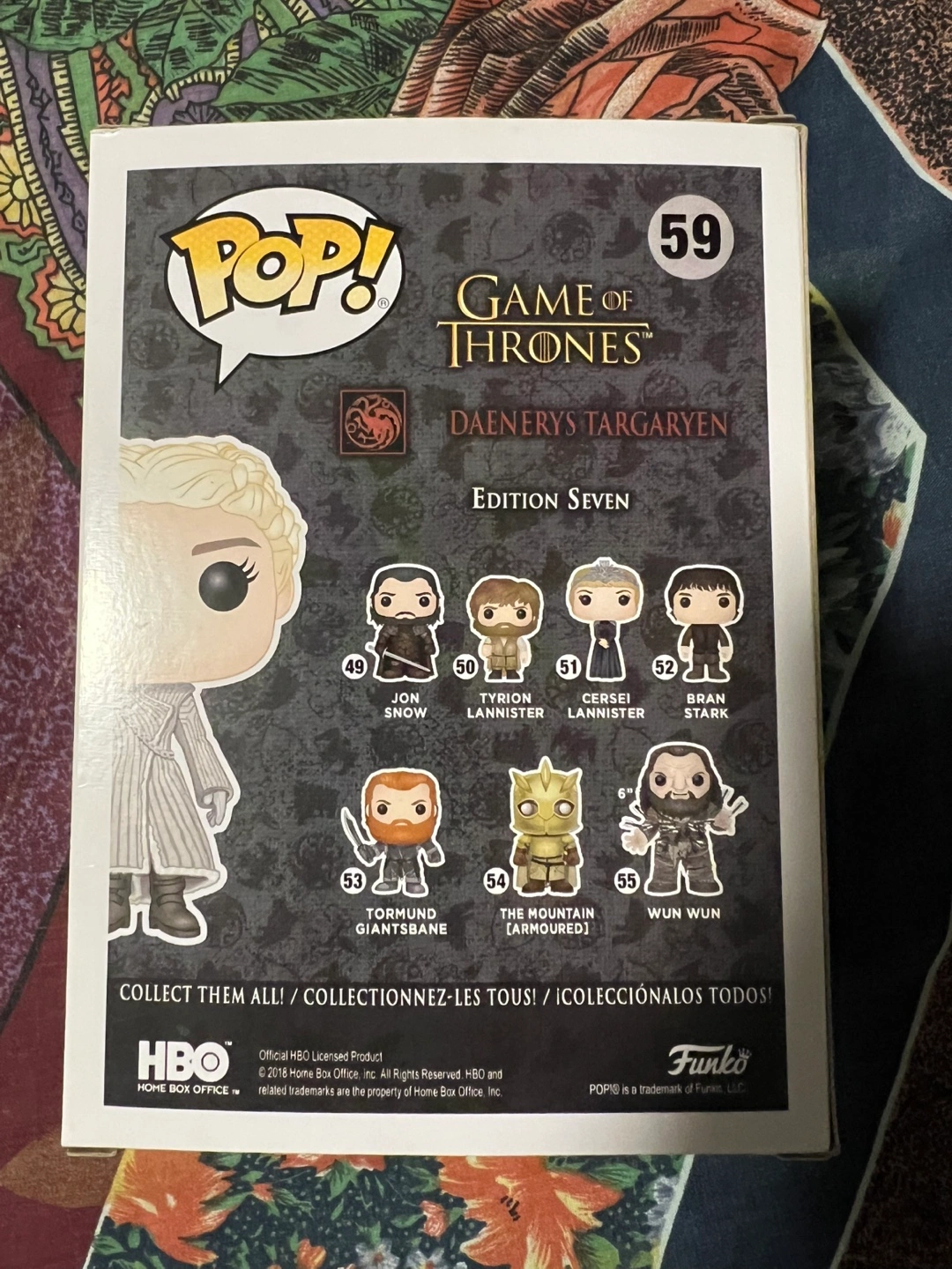 Selling a Funko Pop! figure of Daenerys Targaryen from Game of Thrones. It's number 59 in the series. The box is included! Cash Rossland & Salem Area Pickup (Ajisen Ramen 334 Rossland Rd E) Smoke Free Home ๐ก Sanitized and Washed Thoroughly ๐งบ Bundle to Save More ๐ Offers and Questions are Welcome ๐