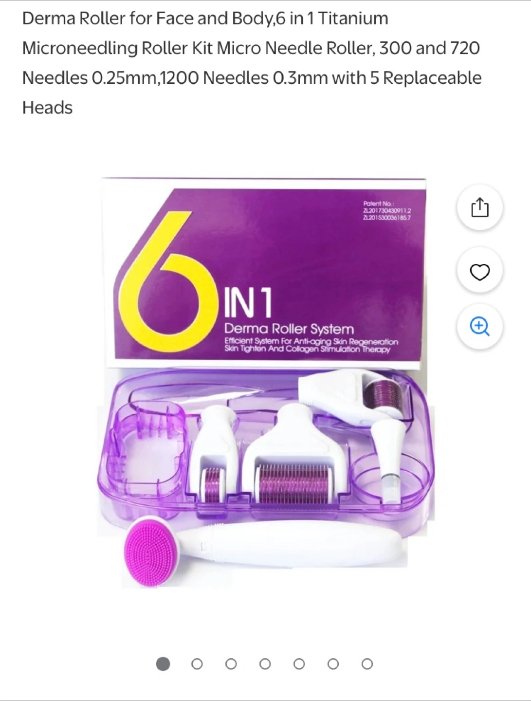 Brand New 6 in 1 Derma Roller Kit is designed for face and body. It includes a titanium microneedling roller with 300, 720, and 1200 needles (0.25mm and 0.3mm). It also comes with 5 replaceable heads for your skincare needs Cash only