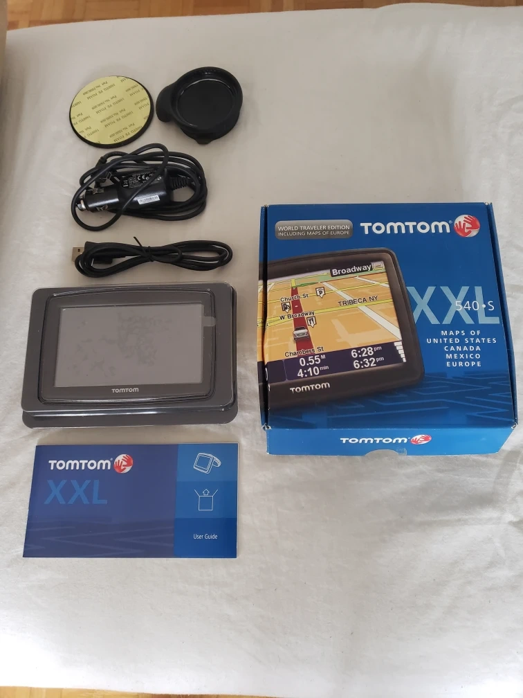 Selling a TomTom XXL 540-S GPS navigation system! It comes with the box and all the included components such as the charger and user guide. It's in great condition and ready to help you navigate your travels.