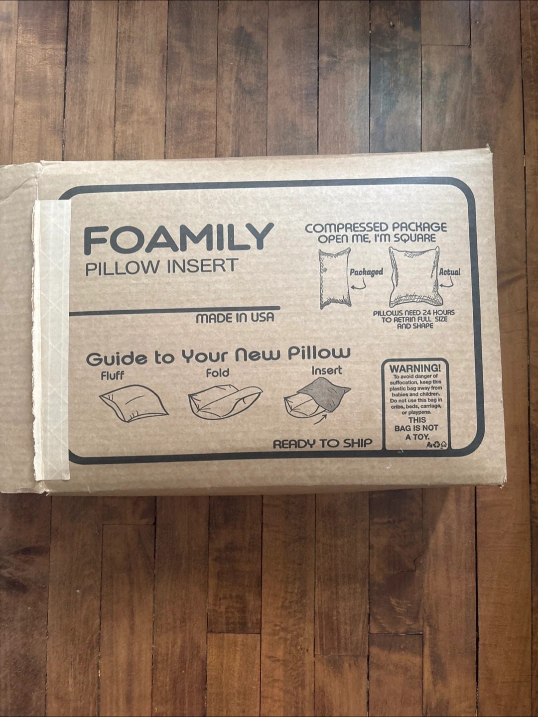 Selling a brand new Foamily pillow insert! It's still in its original packaging, ready to be shipped. The box includes instructions on how to fluff, fold, and insert the pillow to get it ready for use. Please allow 24 hours for the pillow to reach its full size and shape after opening.