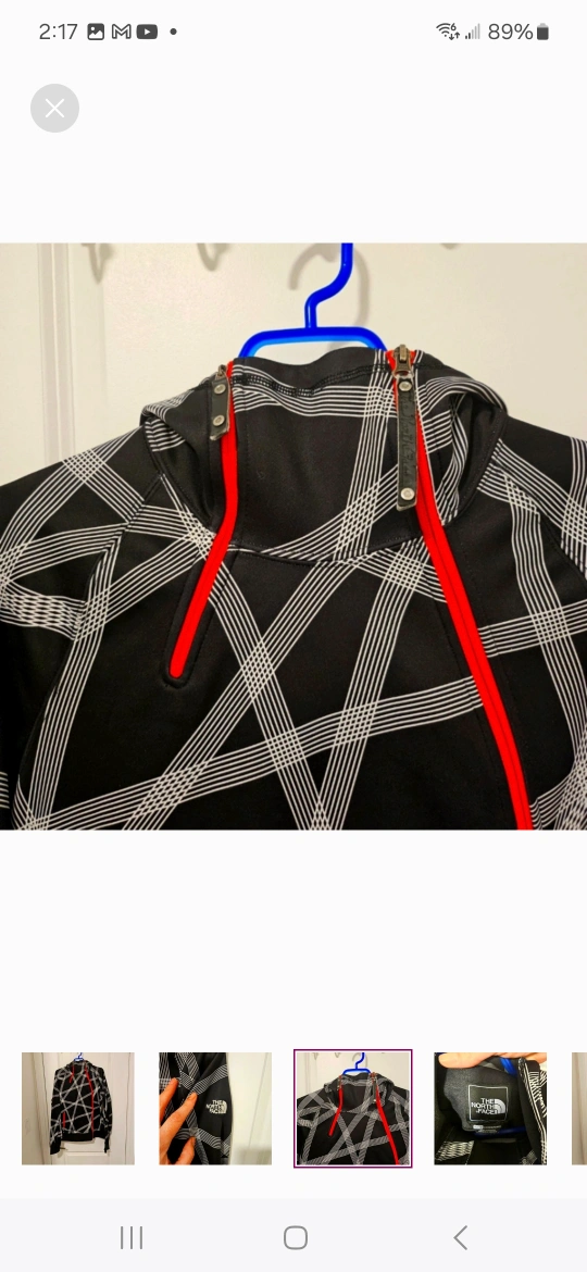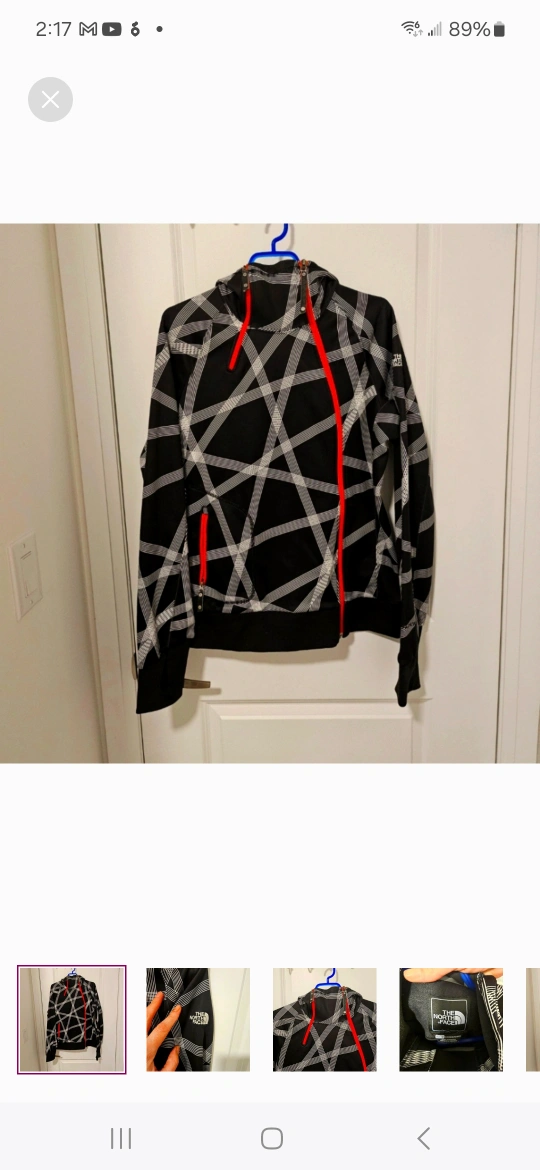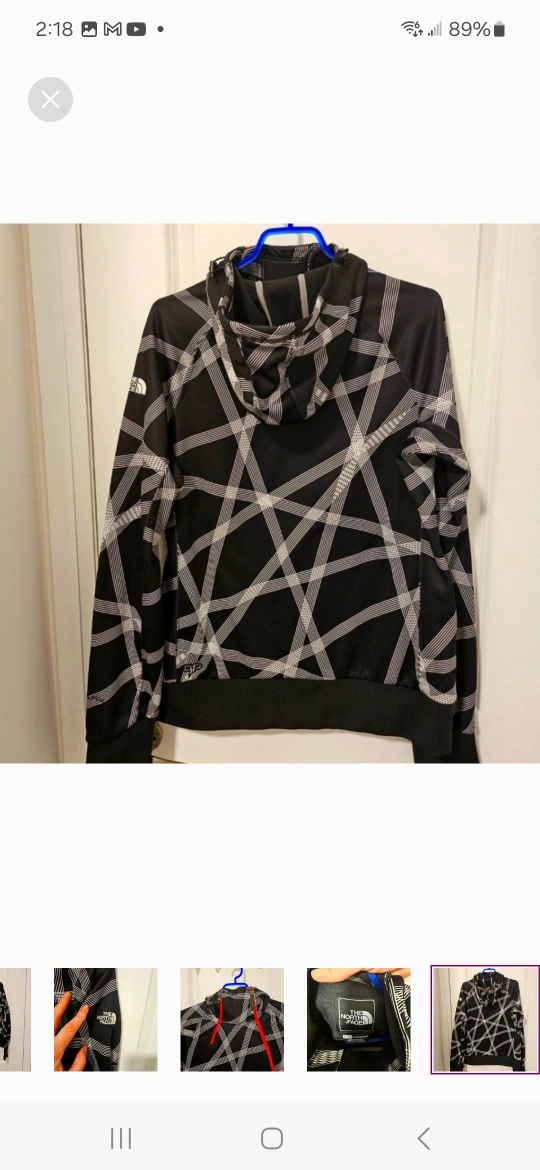 Selling a The North Face hoodie in size XL/TG for women. It features a black and white geometric pattern with red accents. Great for layering or wearing on its own!, excellent condition