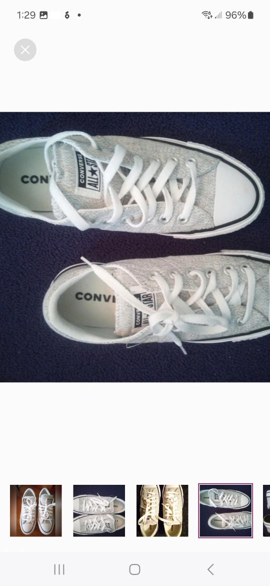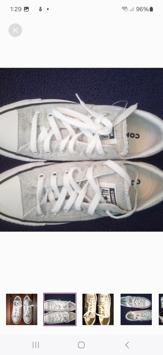 Selling a pair of Converse All Star low top sneakers in a light grey colour. They're in great shape and ready for a new home! Size is a women's 8.