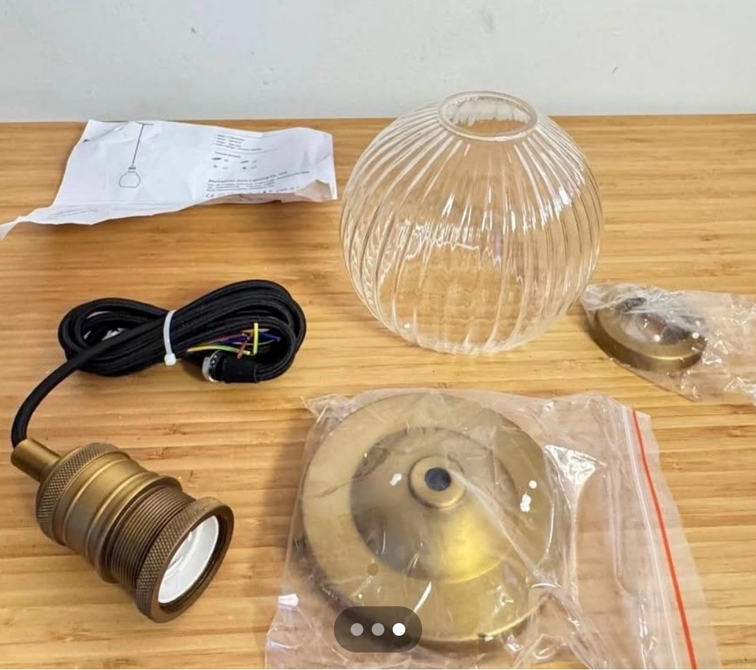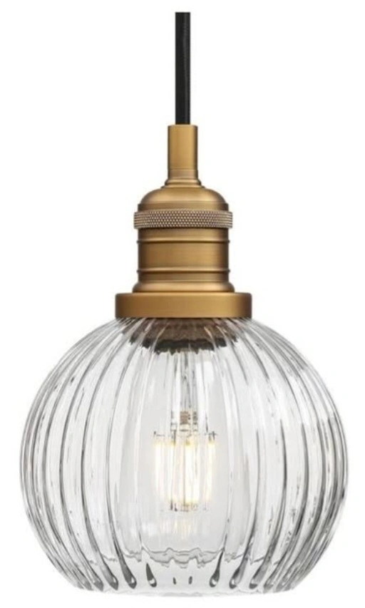 1 light amber striped glass pendant light fixture! It features an adjustable hanging light perfect for the kitchen island, bathroom, or dining room hallway or any room. The dimensions are approximately 7.8 inches in diameter and 10.5 inches in height. This fixture uses an E26 base and supports up to 60W bulbs (Antique Brass) Near Yonge and Sheppard