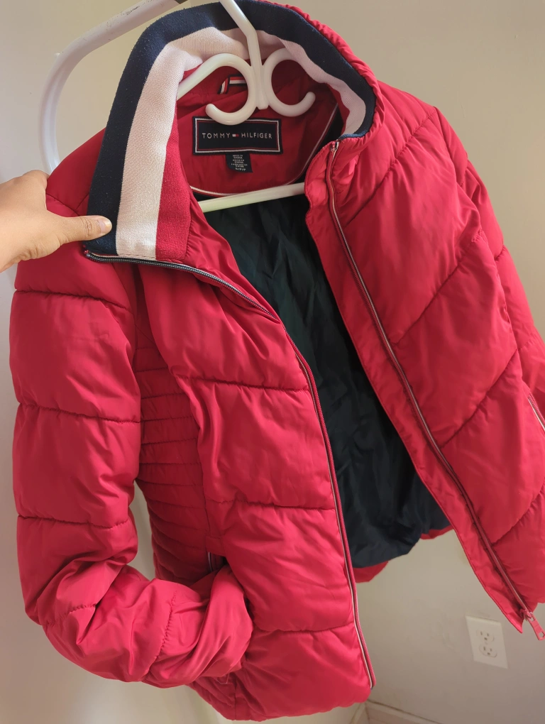 💧WASHED WELL and SANITIZED💧 Here's a stylish red puffer jacket from Tommy Hilfiger! It's in great condition and ready for a new home. Perfect for staying warm during those chilly Canadian days pet free non veg free family