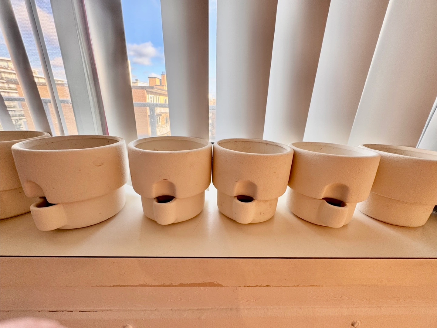 Self-watering plant pots. They're perfect for succulents or small plants.. They have a unique design with a small opening at the bottom for drainage. These pots are in great condition. 4.5" $15. Each