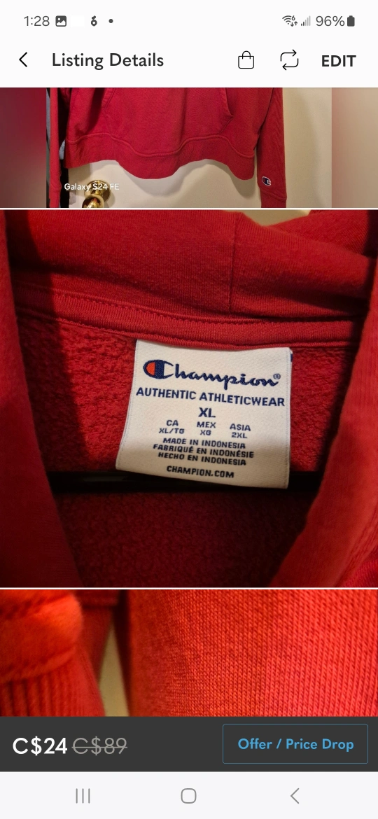 Selling a red Champion Authentic Athleticwear hoodie. It's in great condition and a size XL. Originally bought for $89!