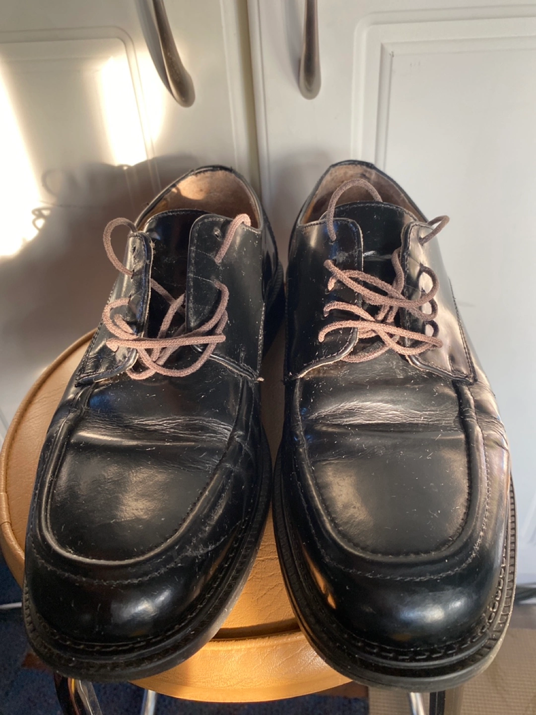Classic black leather dress shoes in a size 10. These have been gently worn and are ready for a new home. Perfect for formal occasions or adding a touch of sophistication to your everyday look