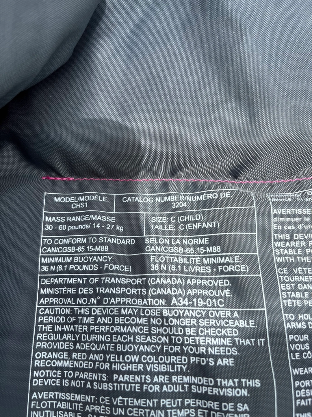 Child life jacket available. It's in great shape and ready for your little one to safely enjoy the water! - Child size fits 30-60 pounds/14-27 kg - Approved by the Department of Transport (Canada) Pick up only. Closest intersection is Jane Sy and Eglinton Ave.