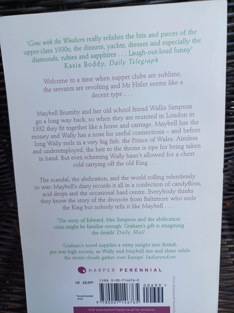 Free book: 'Gone with the Windsors' by Laurie Graham! It's a novel exploring the story of Edward, Mrs Simpson, and the abdication crisis. A witty insight into British pre-war high society, as Wally and Maybell rise while the storm clouds gather over Europe.