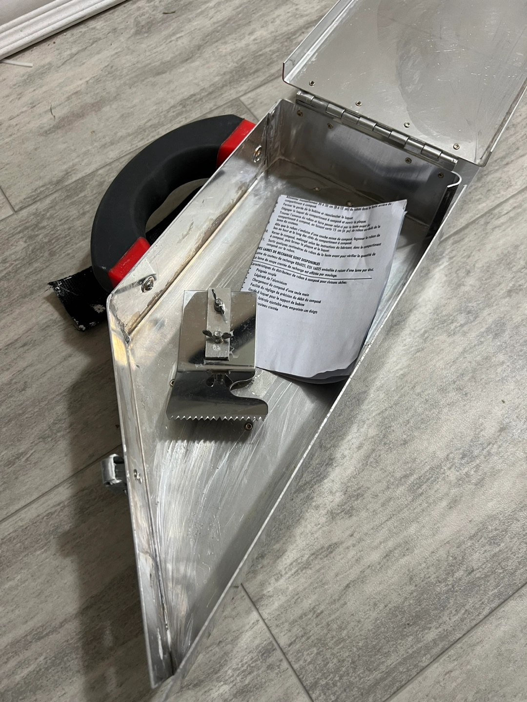 Drywall Taper Banjo with Soft Grip Handle Description: QLT by MARSHALLTOWN 6024 used 1 single job still like new condition! Key Features: Made from lightweight aluminum Comfortable soft grip handle Adjustable web side handle One-handed mud loading Serrated cut-off blade Price: $150 Local Pickup in Westmount Delivery & Shipping Available — TBAN77