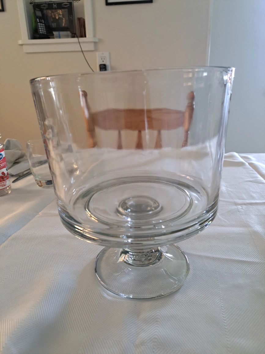 this pampered chef trifle bowl has no chips or cracks. Great for dessert or fruit bowl. 8" diameter x 9 1/4" tall x 5 1/4" deep Killarney area non smoking home cash only