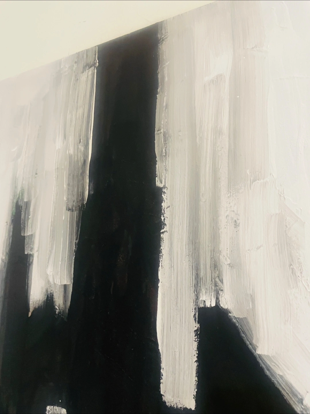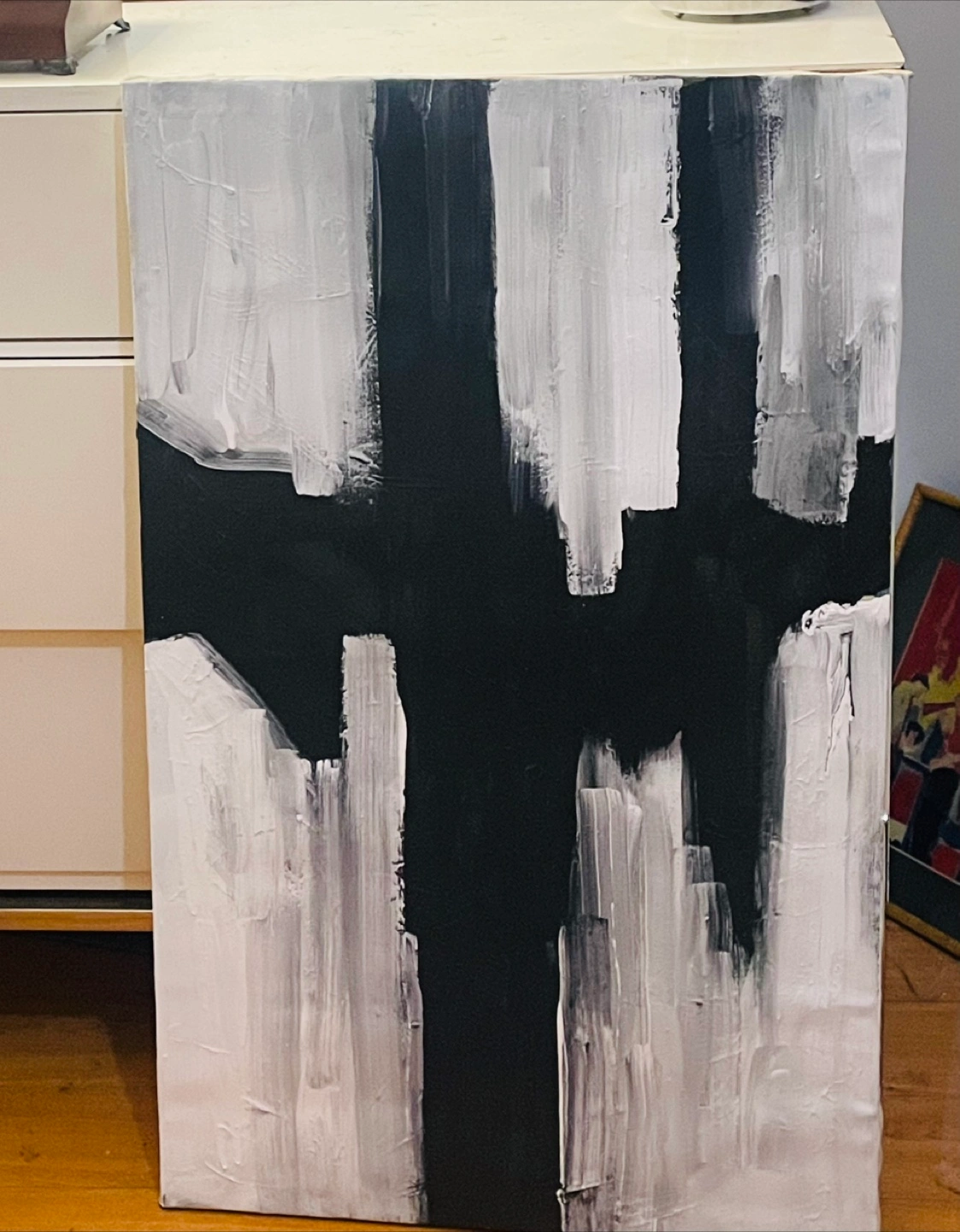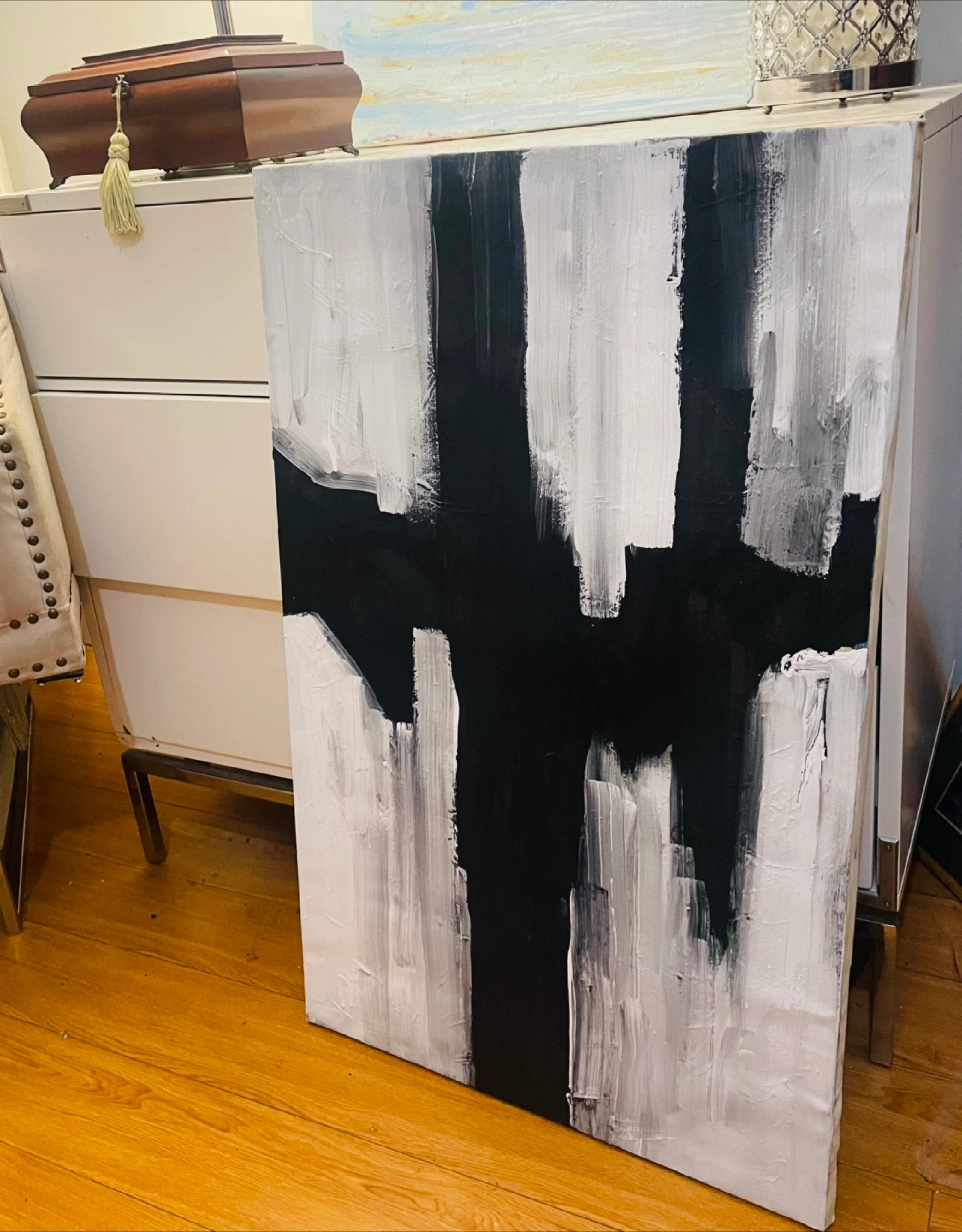 Here's a striking abstract painting in black and white. It would look great in any modern living space! Painted on a linen canvas with wood frame Pickup today Bloor & Bathurst