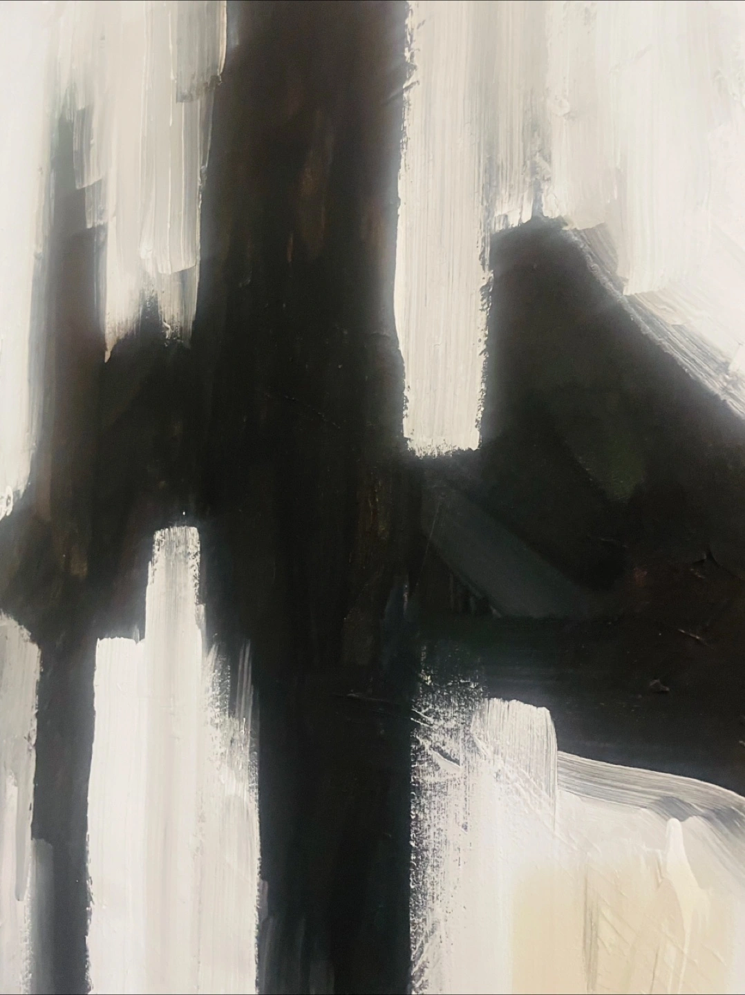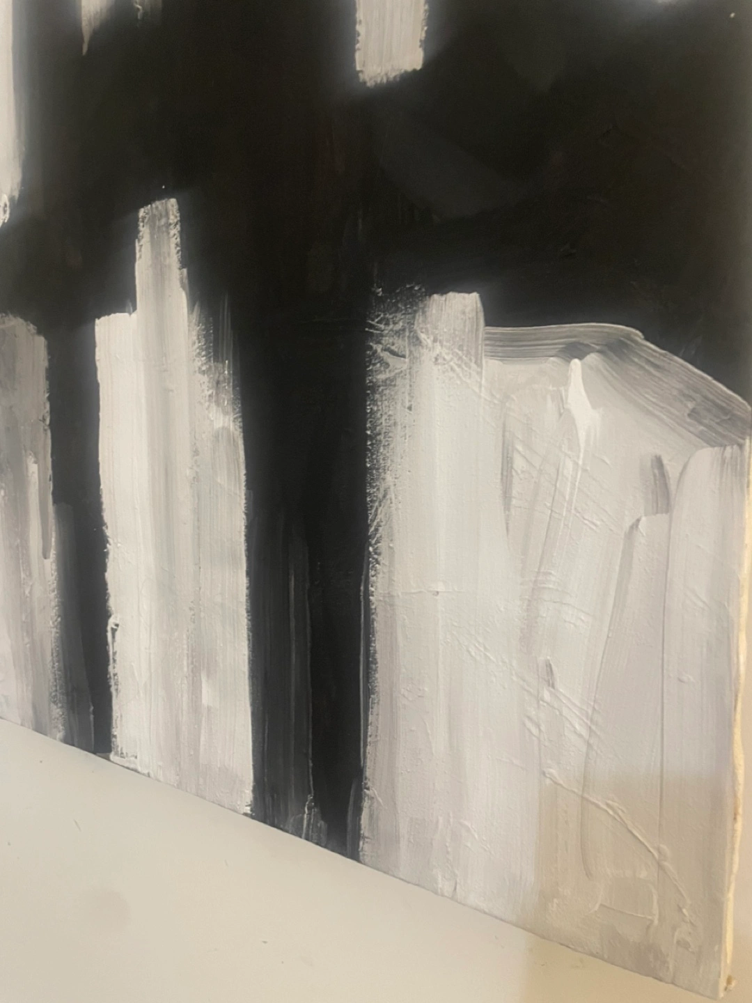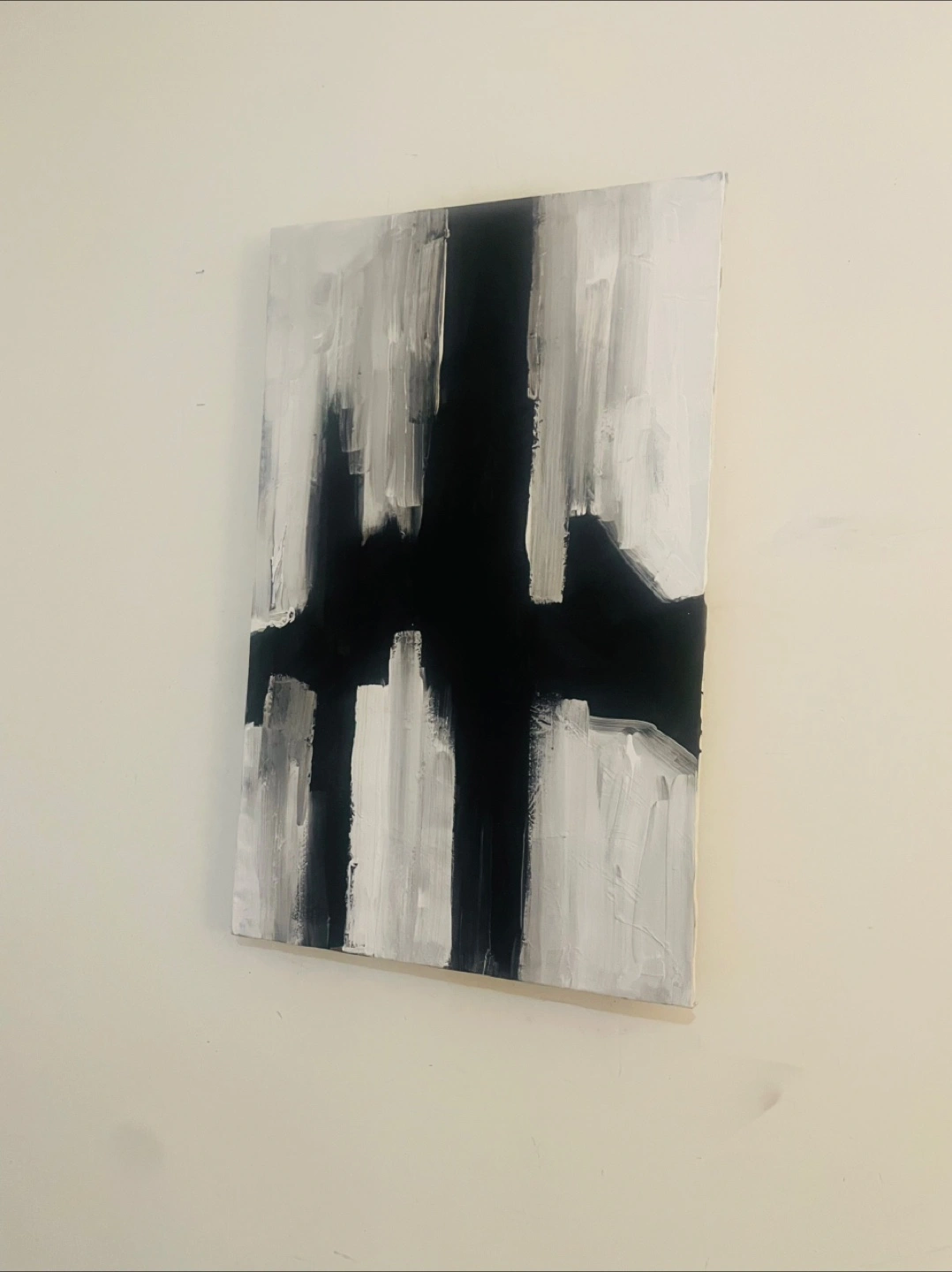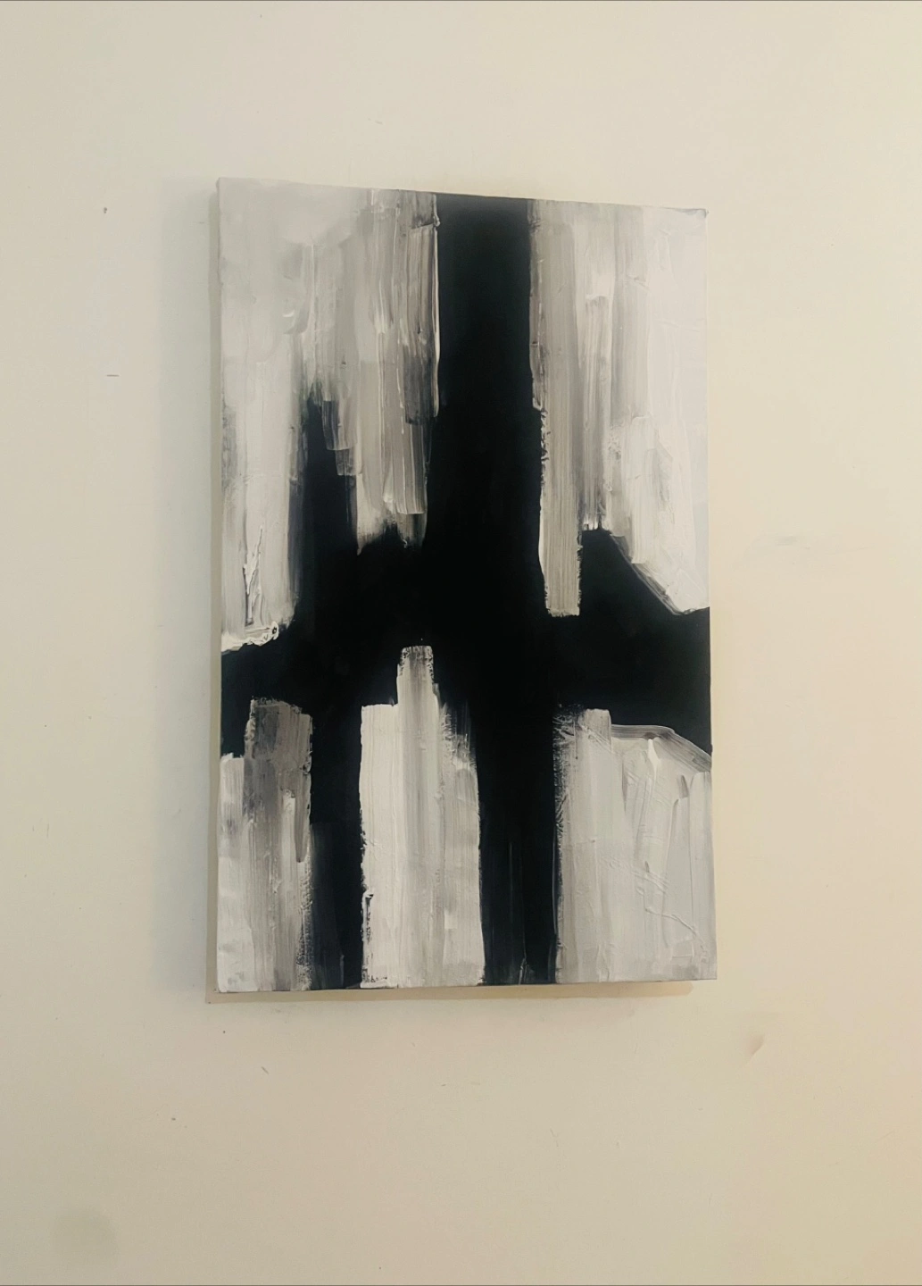 Here's a striking abstract painting in black and white. It would look great in any modern living space! Painted on a linen canvas with wood frame Pickup today Bloor & Bathurst