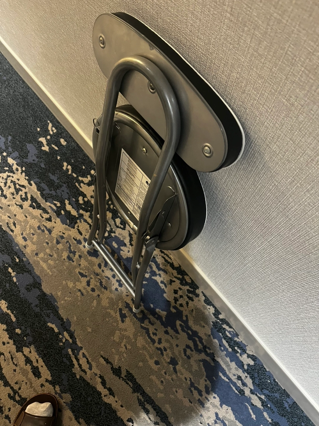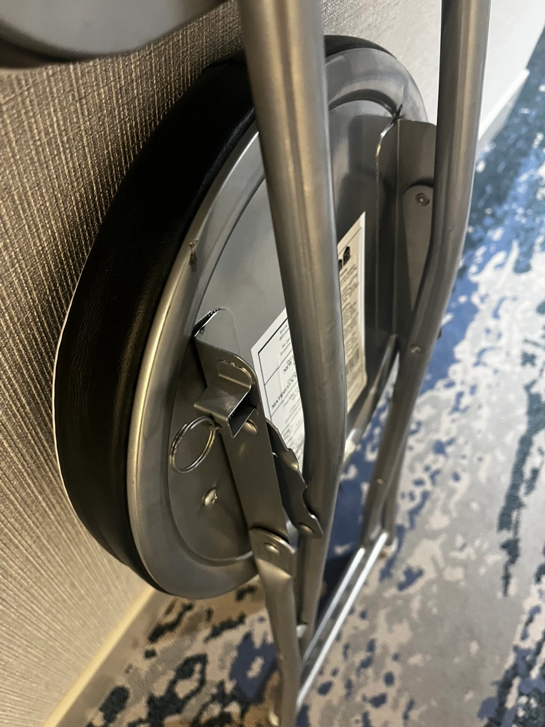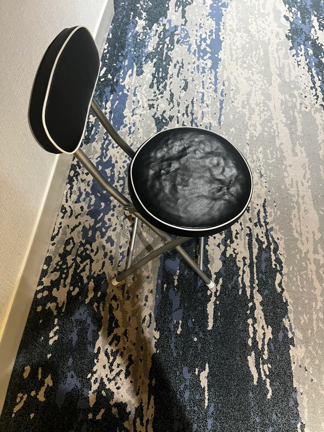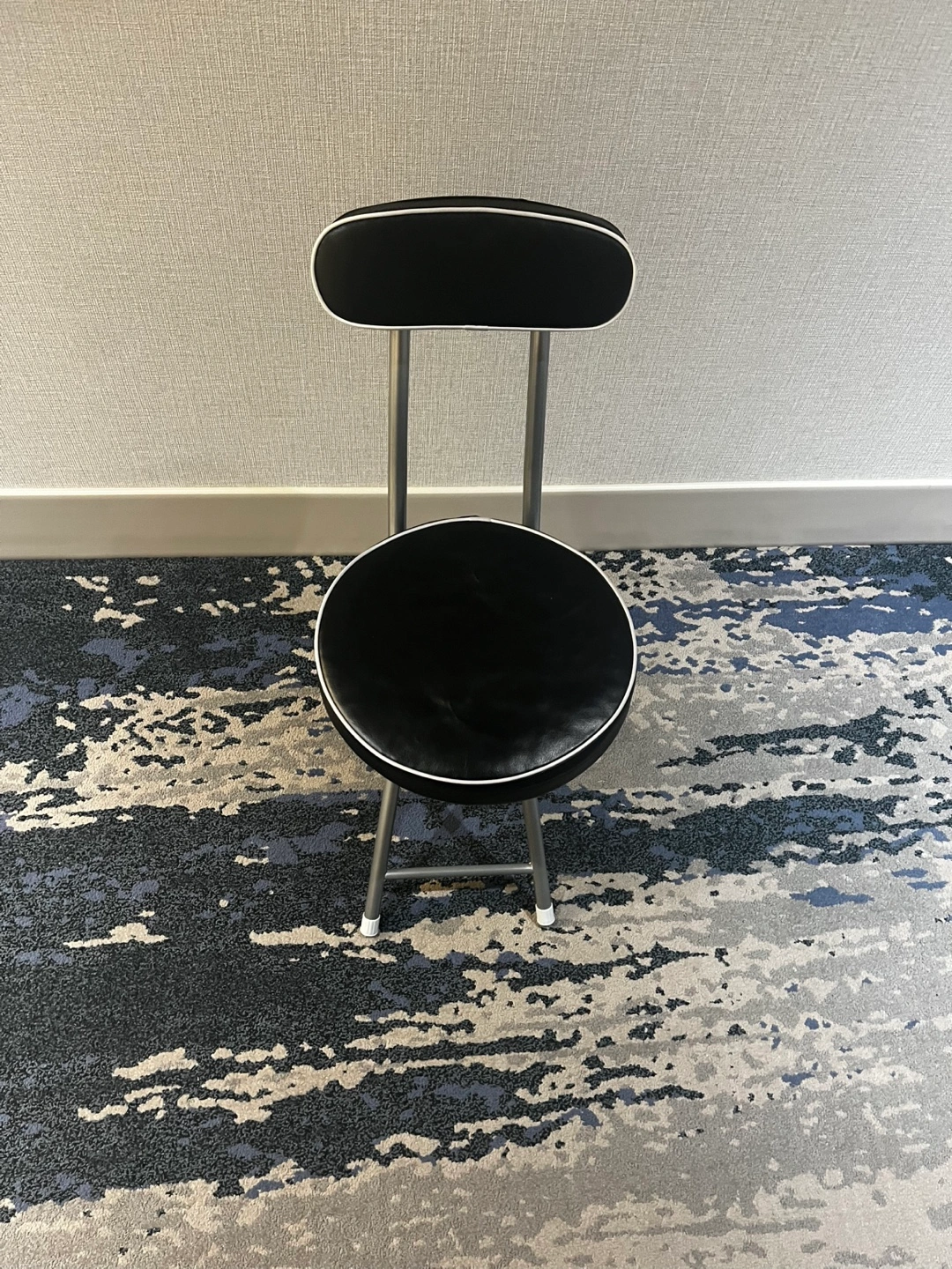 This is a new folding stool from Home Maison Collection. It's made with new material only, as indicated on the label. The seat and back are made of polyurethane foam and faber batting. It's a great stool to have around when you need an extra seat