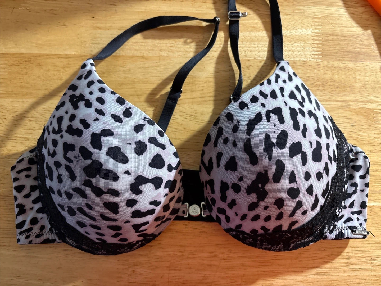 Selling bra with leopard print. 36B size. It has magnetic clip in-front. It is in good condition! Only available for pick up.