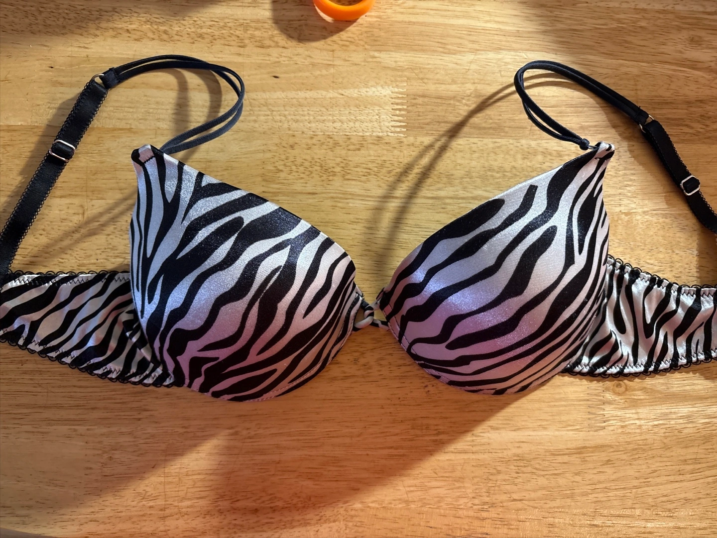 Selling a bra with a fun zebra print! Pretty spaghetti-strap. It's in great condition and ready for a new home. Only available for pick up.