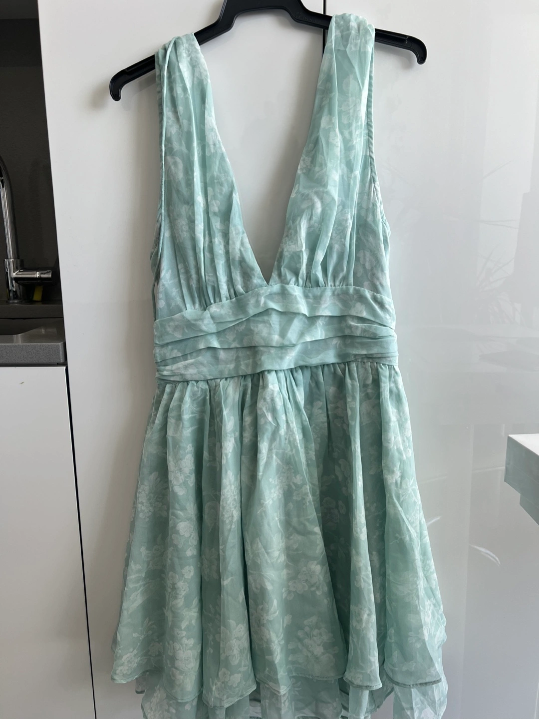 Selling a super cute Abercrombie & Fitch mini dress! It's a light mint green colour with a white floral pattern. Perfect for summer or a special occasion. It's a size small and in great condition!
