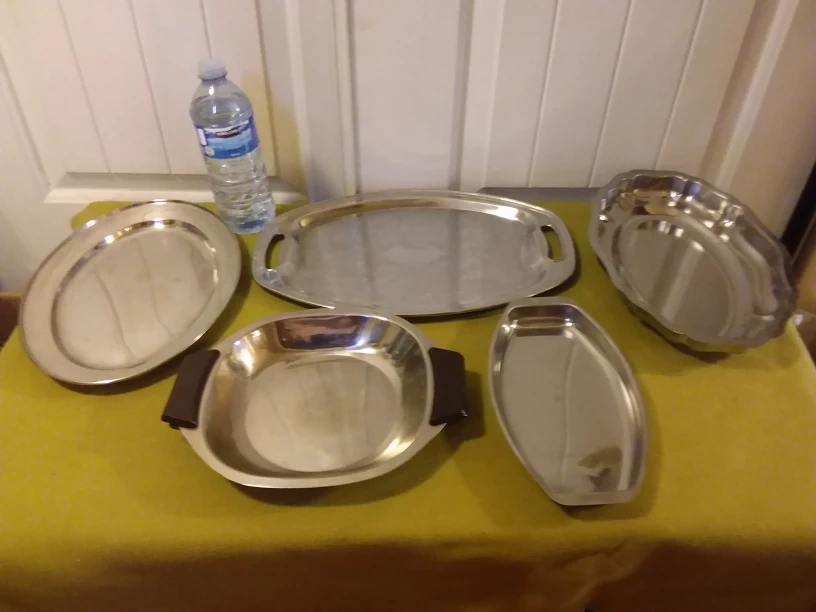 Selling a selection of Silver Serving Trays π They're perfect for entertaining or adding a touch of elegance to your home. Various shapes and sizes available π β‘οΈ All (5) for $5.00 β¬ οΈ Excellent Condition π Check out the many other items I have Available β¬οΈ Just Scroll Down π Past Similar more Expensive Items π± - until you reach David Scooter Man items π β‘οΈ Delivery not Available β¬ οΈ I'm βΏ No π« Vehicle ***Pickup Availability is (2 - 8 pm) only*** Day & Time of Meetup is required. ποΈ π