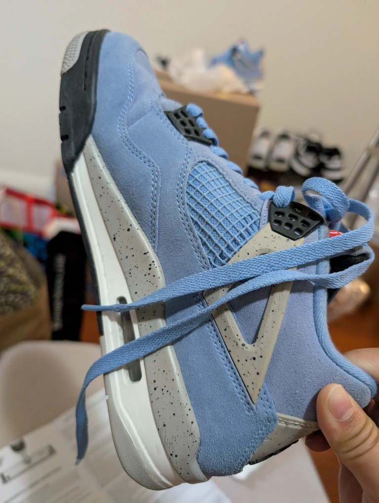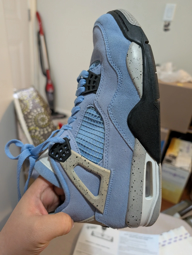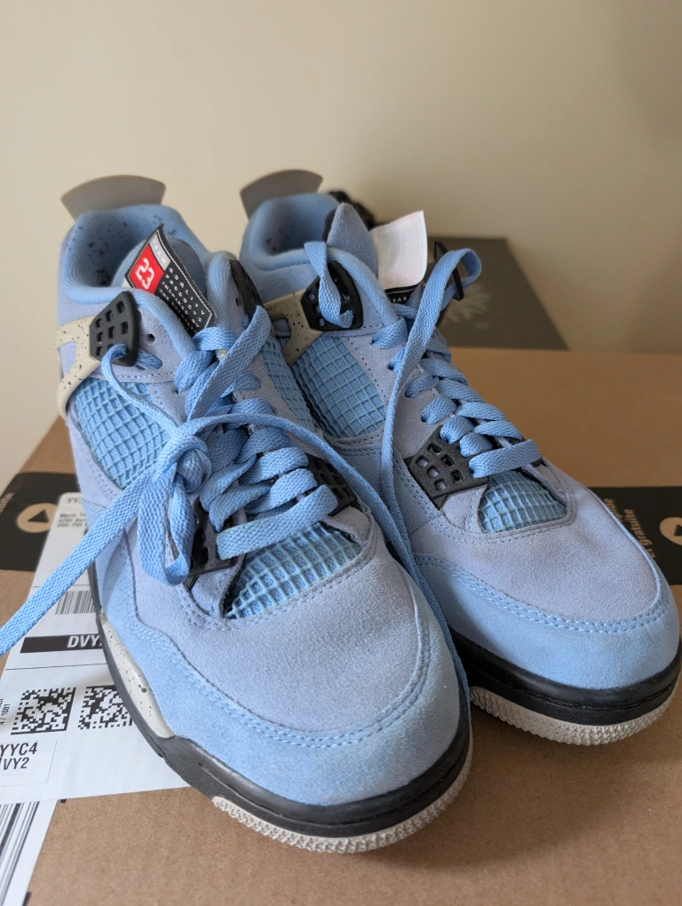 Selling a pair of Jordan 4 Retro in the University Blue colourway! They are in excellent condition and ready for a new home. Size is US 7.5