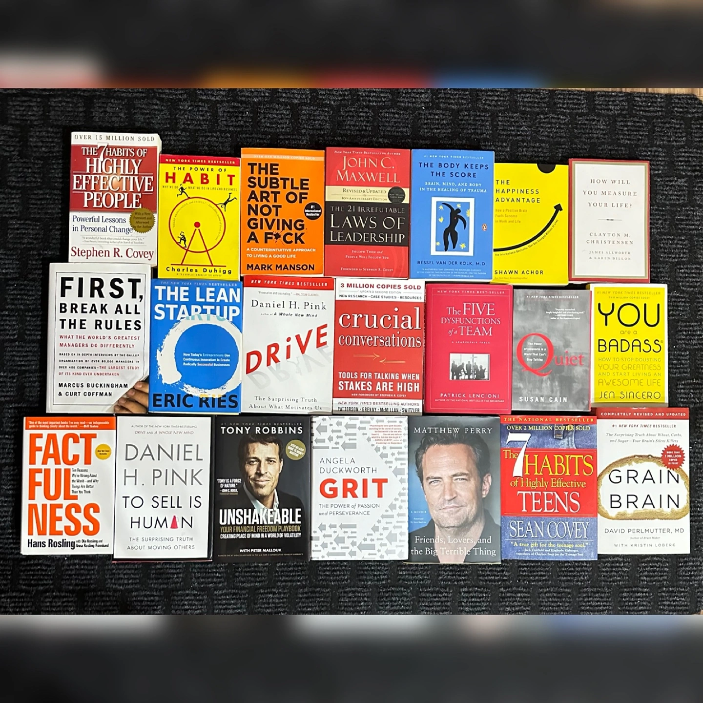 💴Prices listed below ⬇️ 📚Self-help, Mindsets, Finance, Knowledge, Biographies, Fantasy, The best New York Time Best Sellers and Cooking Books: 📕”HC”: Hardcover - The subtle art of not giving a fck by Mark Manson ($10, Hardcover $20) - Crucial conversation by Kerry Patterson ($10) - 7 Habits of highly effective teen by Sean Covey (HC$15) - 7 Habits of highly effective people ($10) - The power of habit Charles Duhigg ($12) - The 21 laws irrefutable laws of leadership John Maxwell ($15) - The body keeps the score Bessel Van der Kolk ($12) - The happiness advantage Shawn Achor ($10) - How will you measure your life Clayton ChrisTensen ($10 paperback, $20 HC) - First, break all the rules Marcus Buckingham (HC $20) - The lean startup Eric Ries (HC $20) - Drive Daniel Pink ($10) - Daniel Pink to sell is Human (HC $20) - The five dysfunction of team Patrick Lencioni ($15 HC) - Quiet Susan Cain ($8) - You are badass Jen sincero ($8) - Factfulness Hans Rosling (HC $20) - Unshakable Tony Robbins (HC $20) - Grit Angela Duckworth (HC $20) - Friends, Lovers, and the big terrible things by Matthew Perry (HC $20) - Grain Brain David Perlmutter (HC $15) 🔥 FYI, All my books are either new or almost new condition. The more books you buy the better deal you can bargain! Pick up at Heartland Mississauga or Yorkdale, Erin Mill Mall Free local delivery Let me know if you need anything