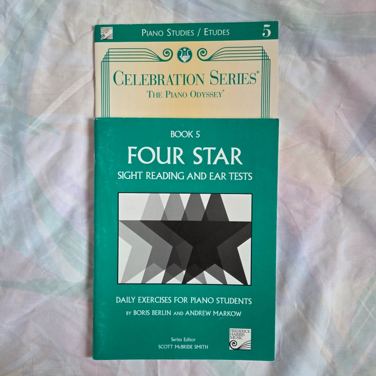 Selling Grade 5 piano books Includes: Celebration Series Piano Studies/Etudes 5, Four Star Sight Reading & Ear Test Book 5 These are the older versions but they can still be used for preparing the piano exam Both in great condition - all pencil marks are erased but there are some stickers on a few pages $10 for both books Hoping the items find a new home! From a smoke-free & pet-free home Cash only & exact change All sales are final; no refunds or reservations Pick-up only Location: Richmond Hill Serious inquries only; messaging only through Karrot Thank you for your interest & please check my 200+ listings for more!