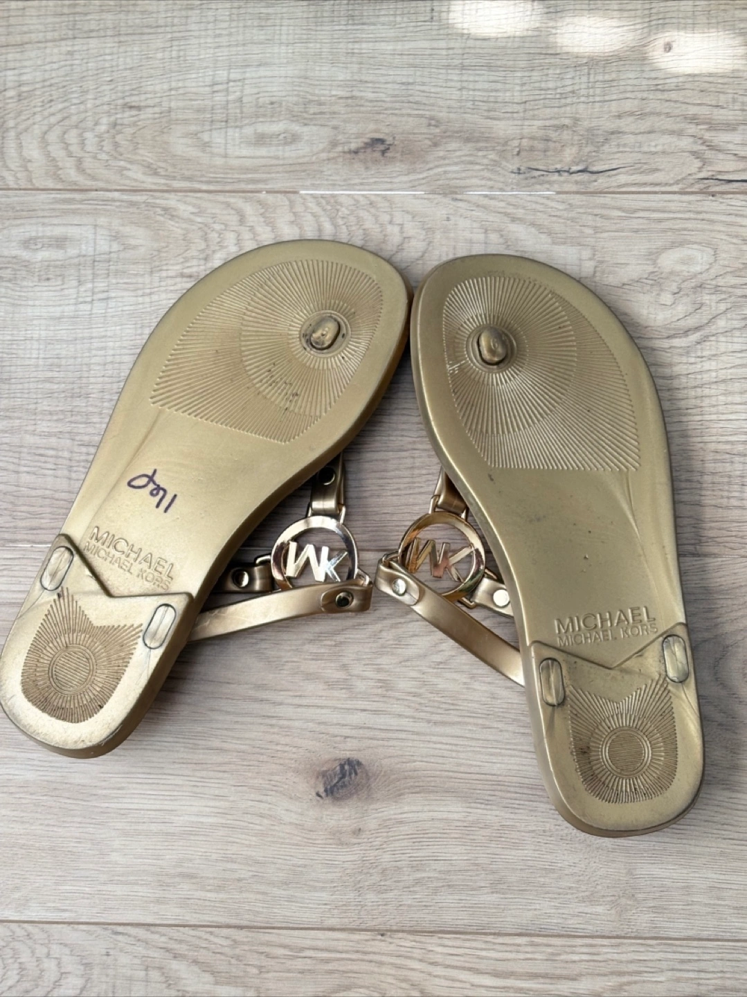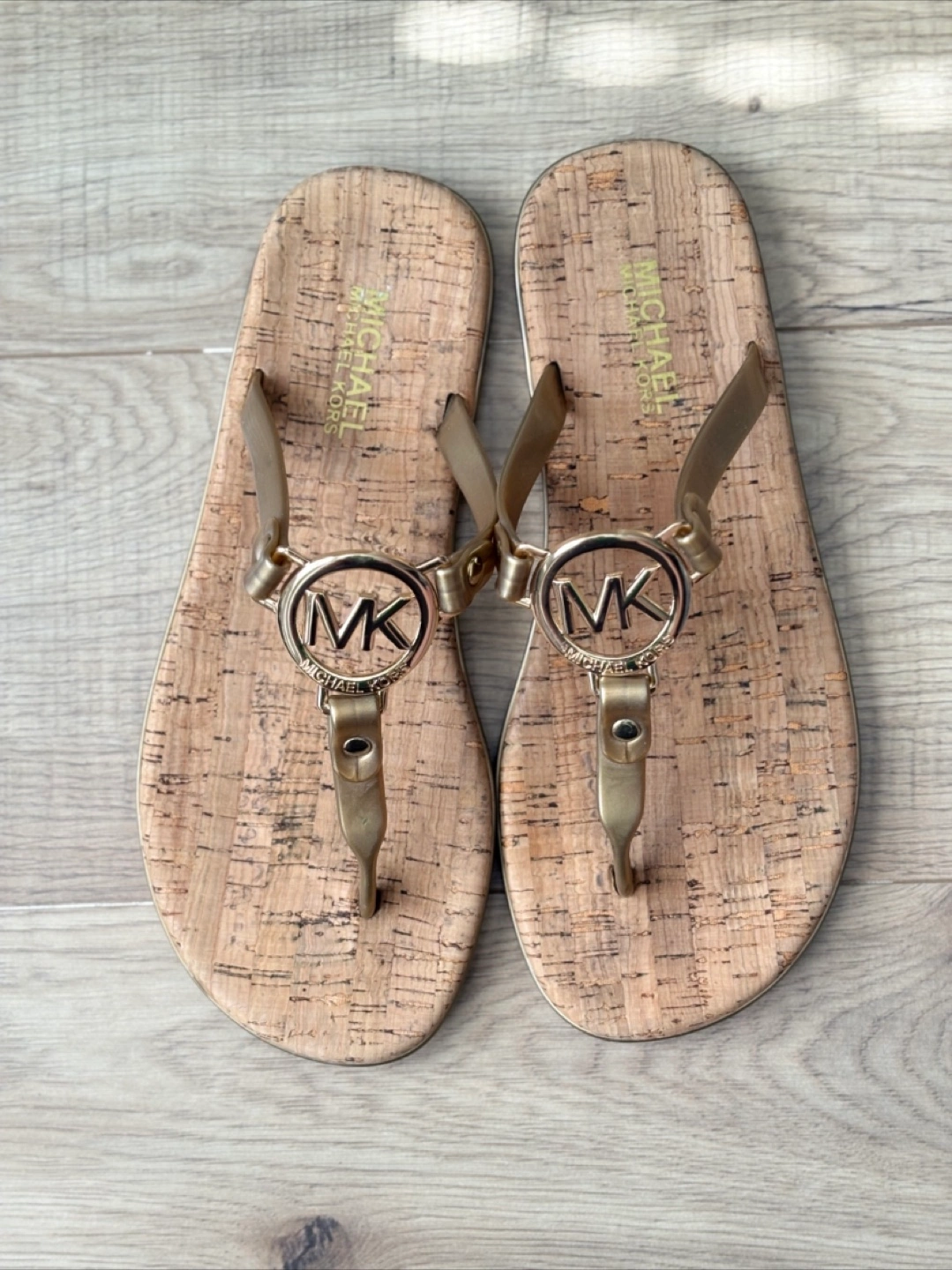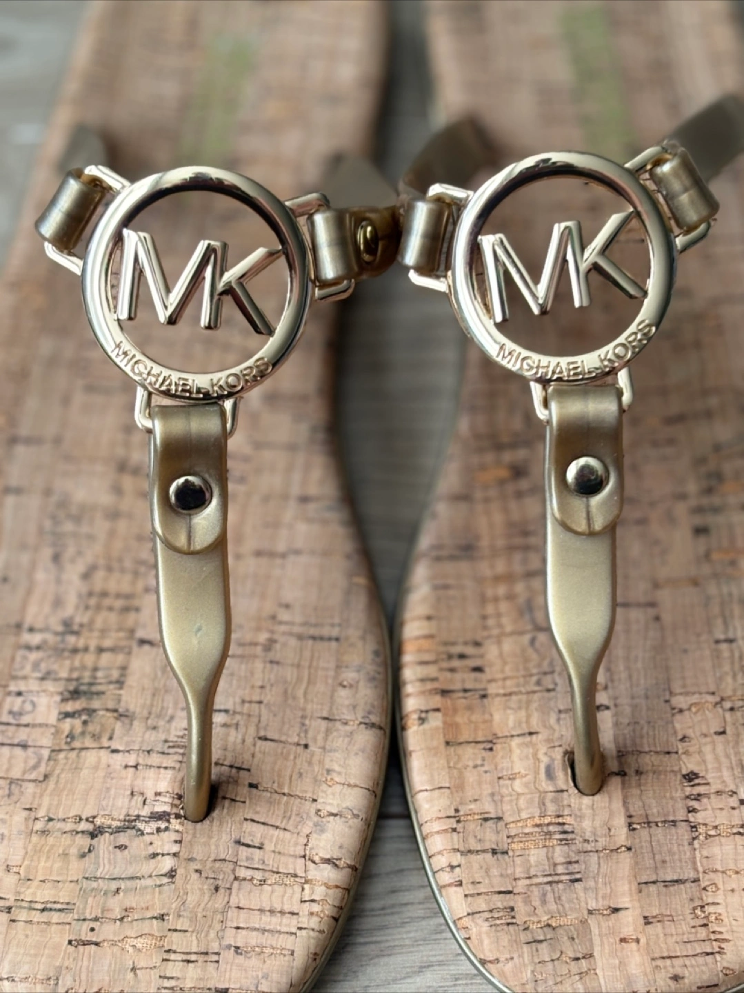 Michael Kors Gold Logo Charm Cork Flip Flop Sandals Size 6 Great condition 💯 $30 • Firm on price 🤝 Please follow my page ➡️ Thrift Happens YXE for more listings. Thanks! 🫶