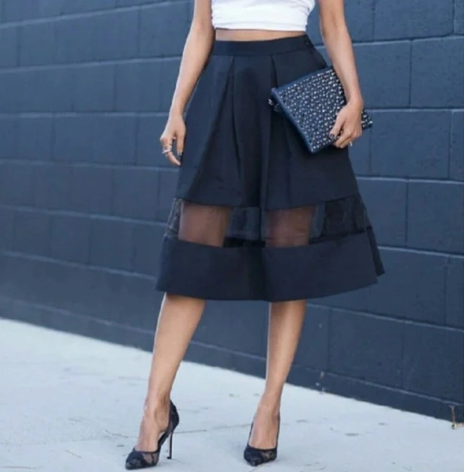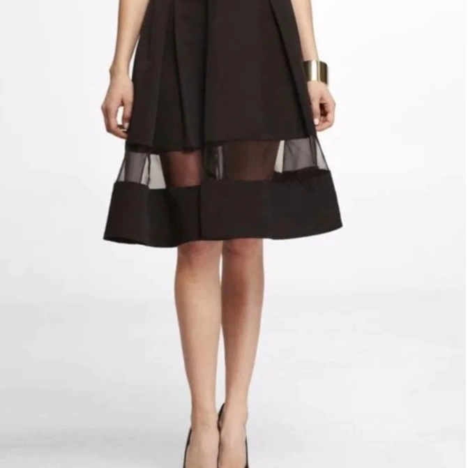 A stylish black skirt with a unique sheer panel detail. It's in great condition and ready for a new home! It's a versatile piece that can be dressed up or down, perfect for any occasion in Excellent condition worn only once!! size 12 pick up at yonge and Sheppard