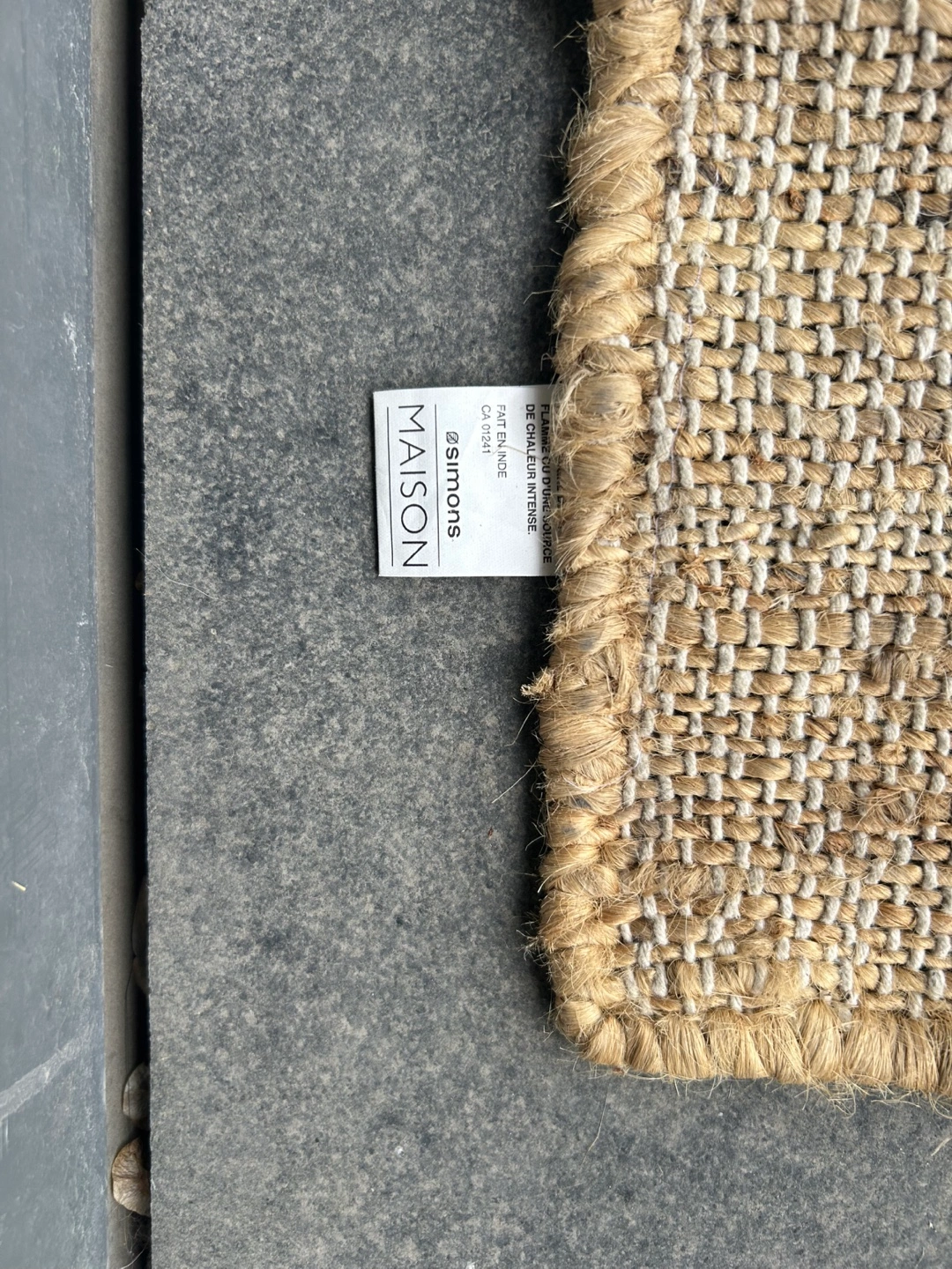 Selling a jute rug from Simons Maison. It's in good condition and would look great in any space!