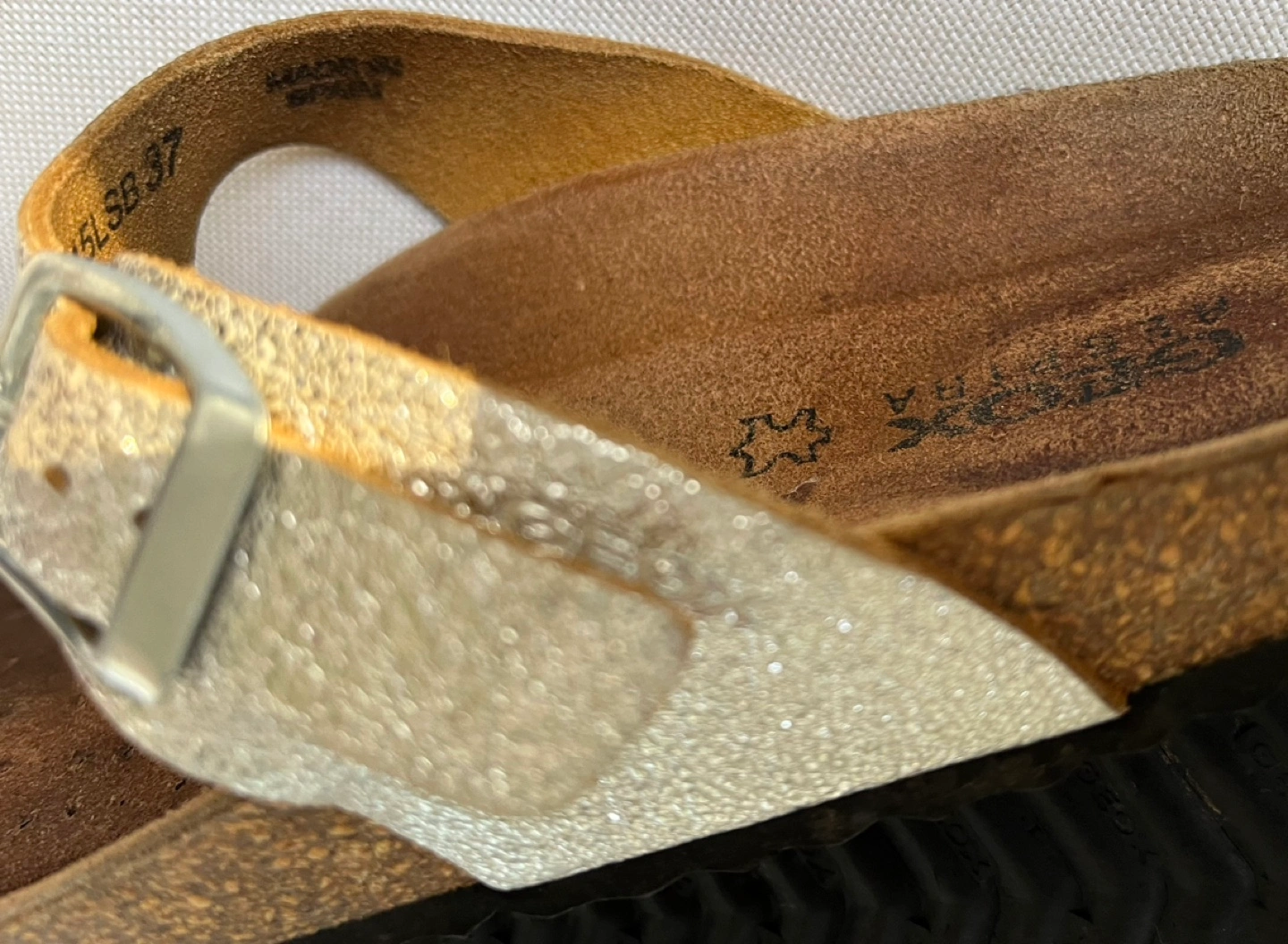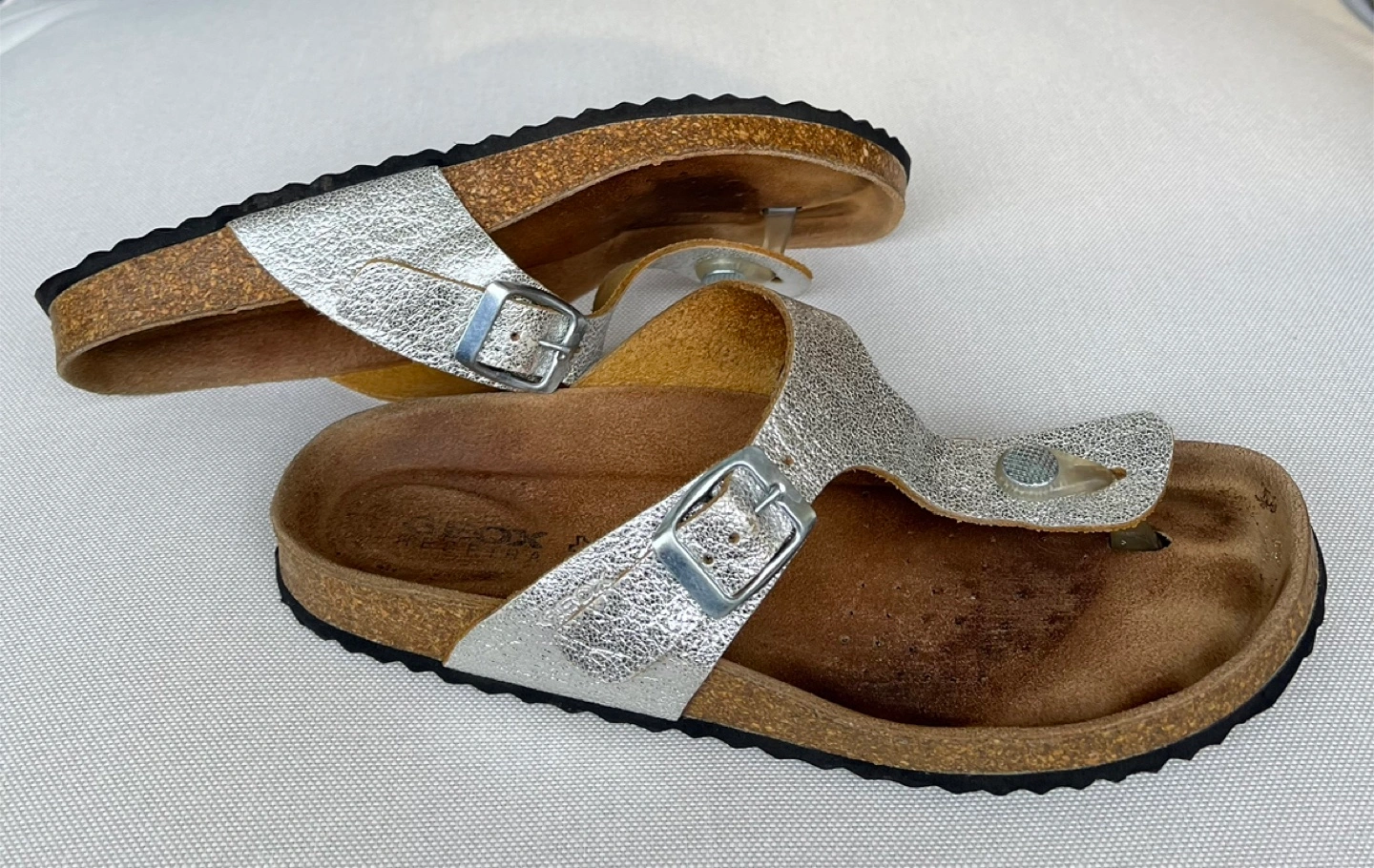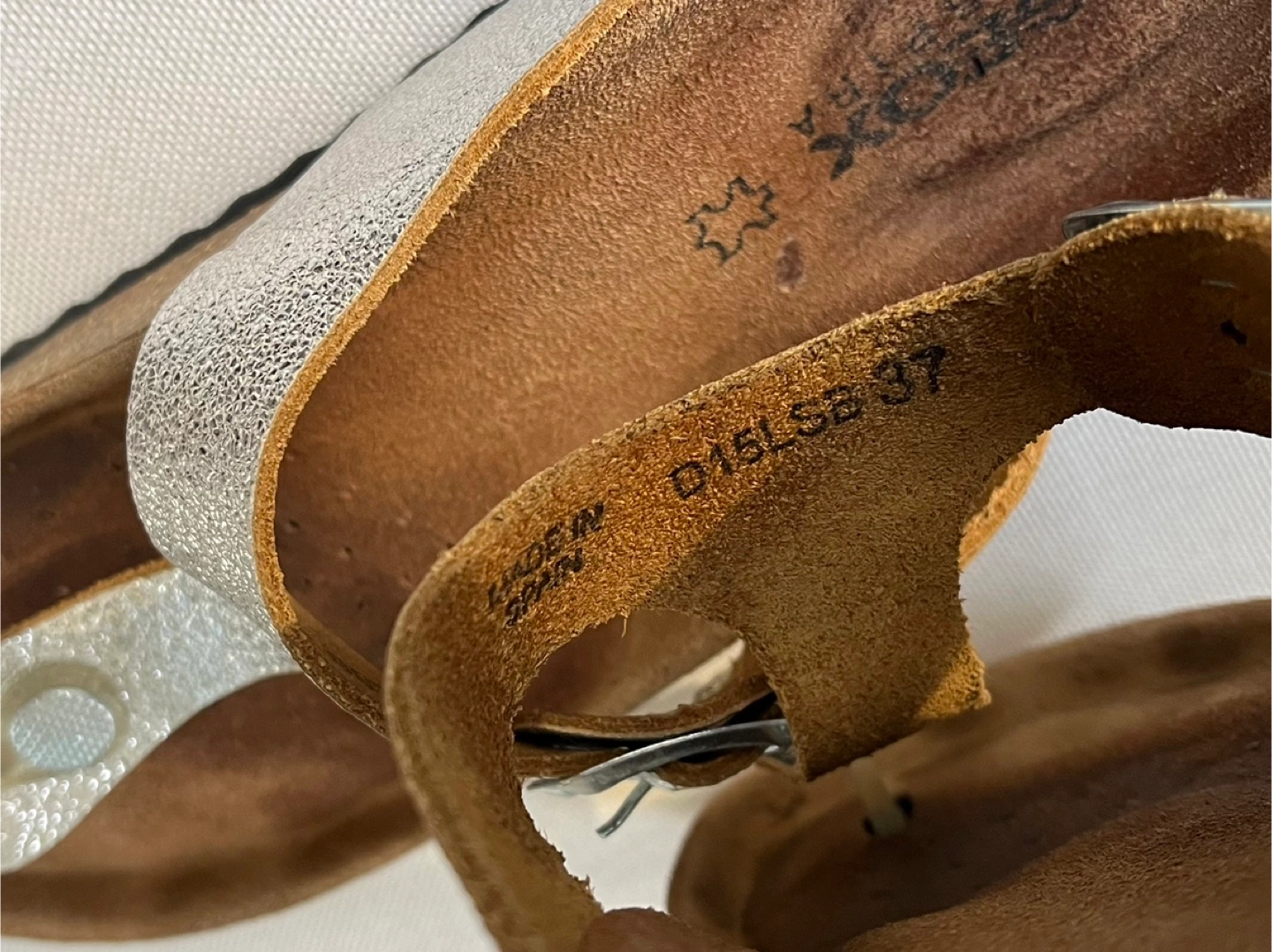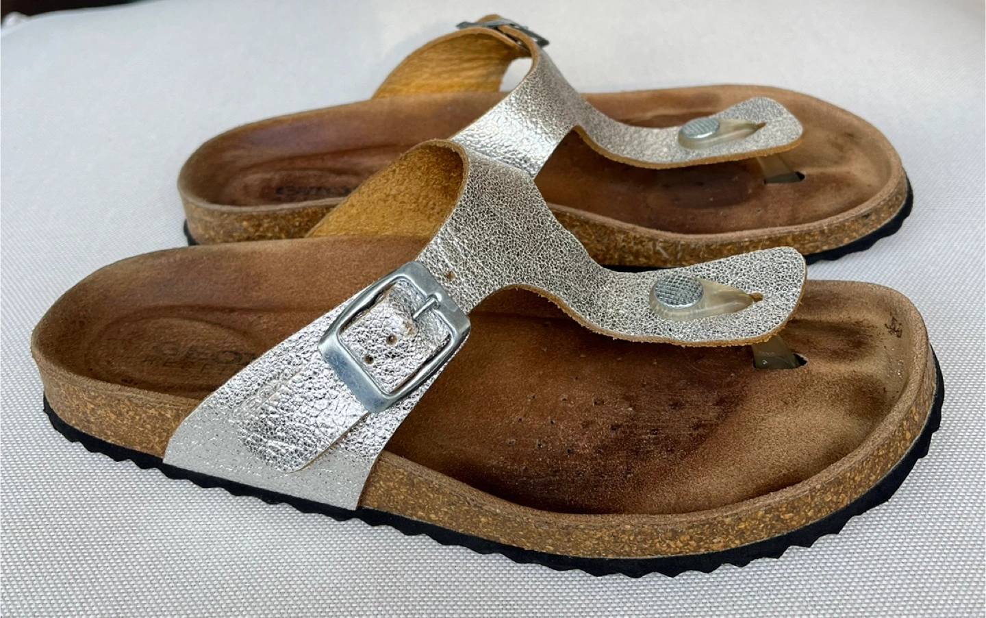 Beautiful GEOX Respira Silver Leather Thong Buckle Flip Flop Cork Sandals Women Size 7 Great Condition, soft and comfortable Pick Up Bloor and Islington Etobicoke