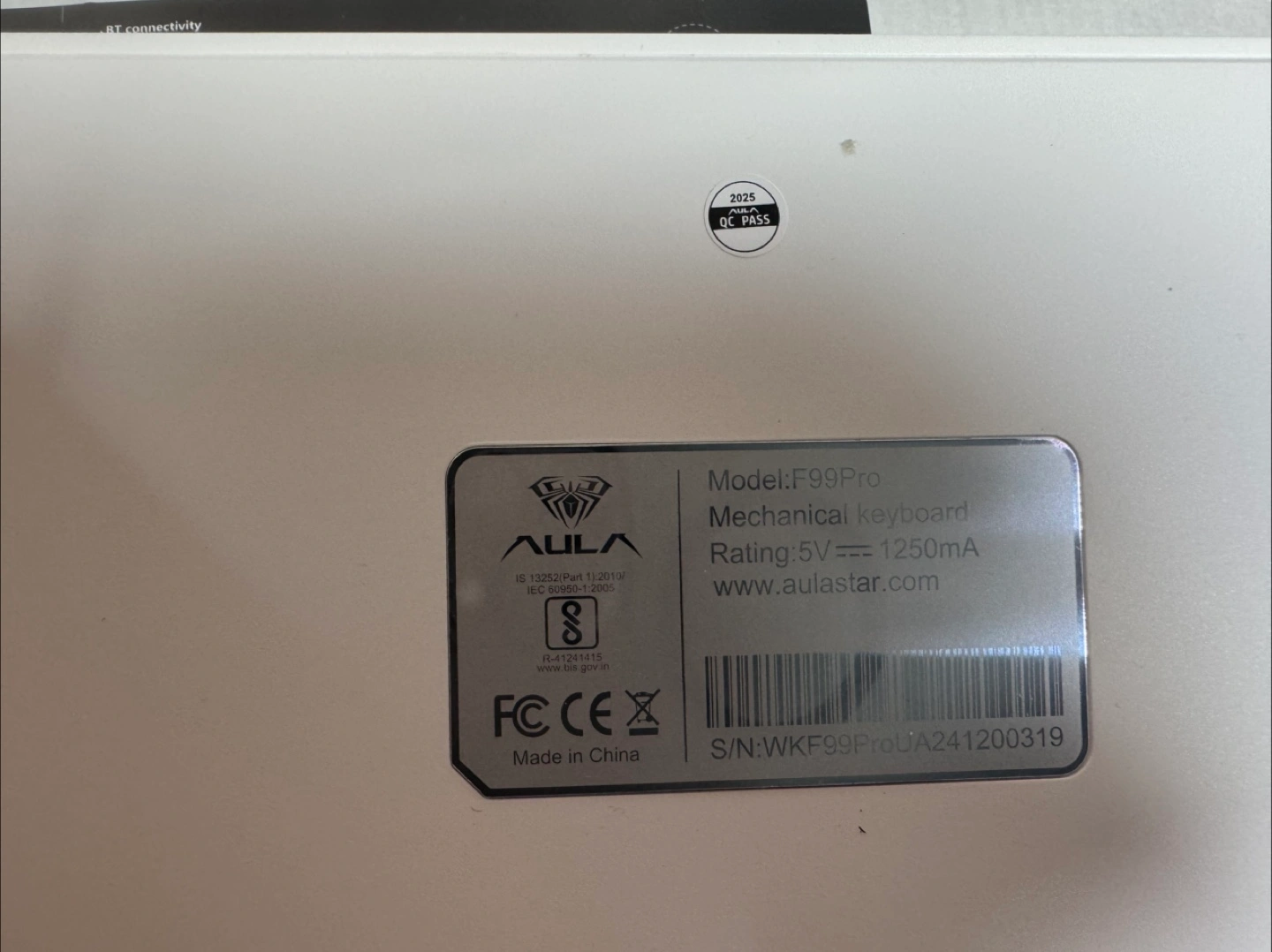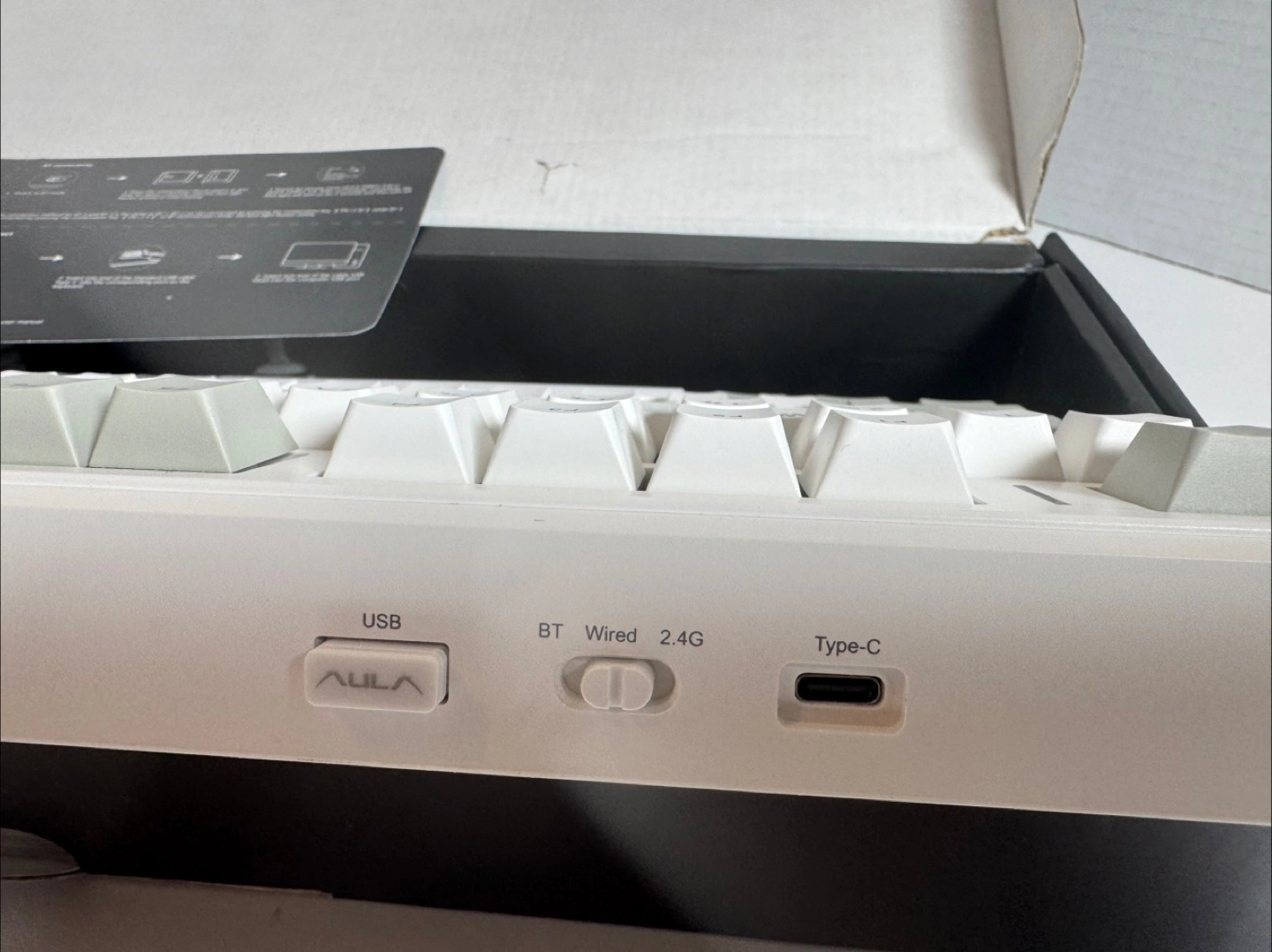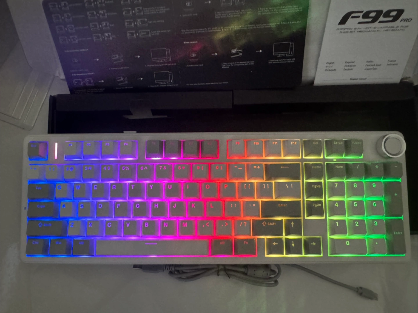 AULA F99 Pro mechanical keyboard in white & Grey. - USB, BT, Wired, and 2.4G connectivity - Includes the box and charging cable