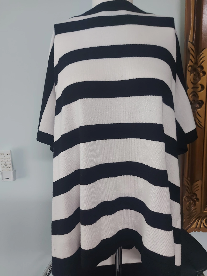 Selling a Cable & Gauge poncho in size XL/TG/EG, once used. It features a stylish black and white striped pattern. Perfect for layering and adding a touch of elegance to your outfit!