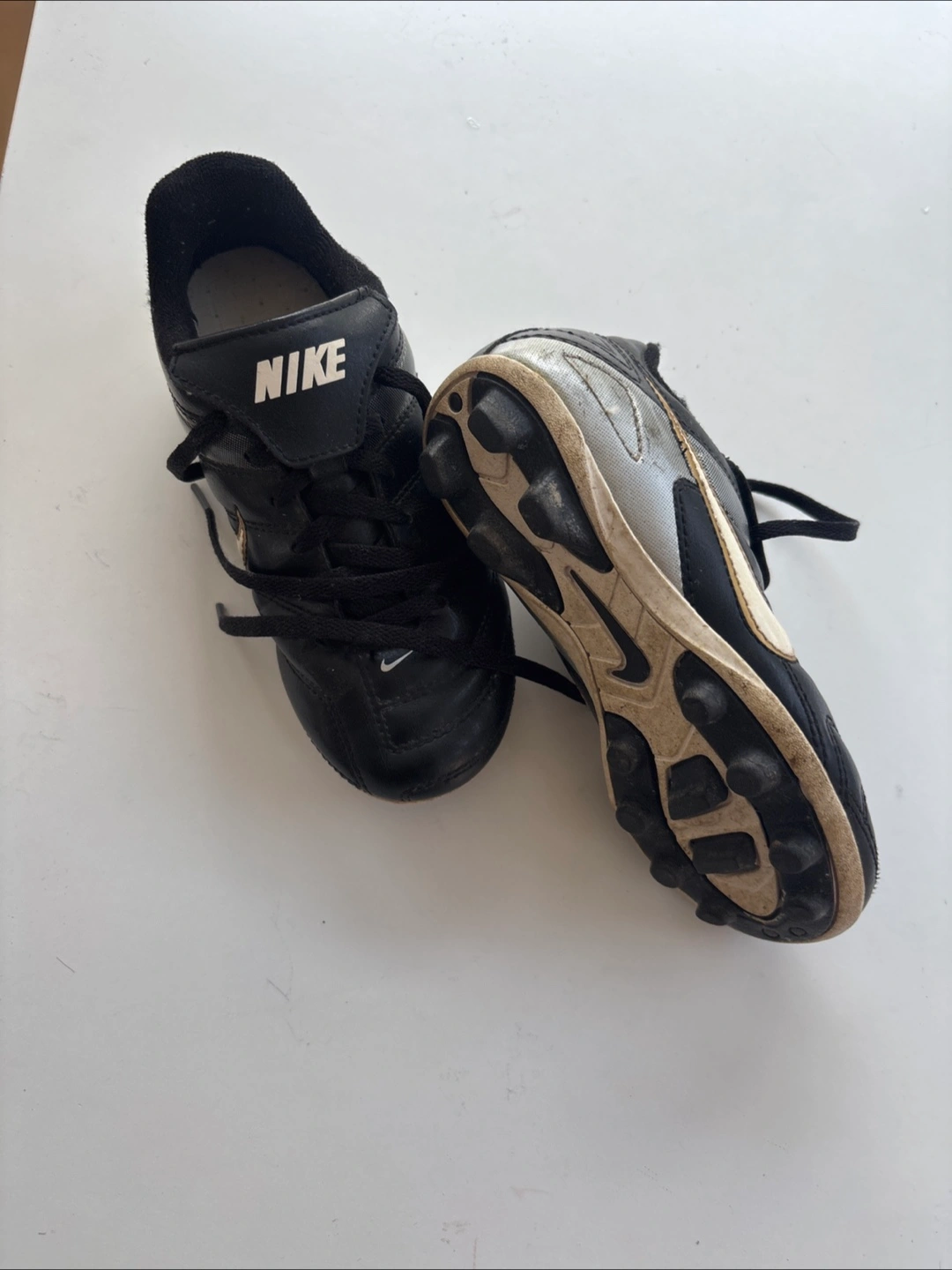 Selling a pair of Nike soccer cleats in black! They are in used condition, as you can see from the photos. The size is US 11.5.