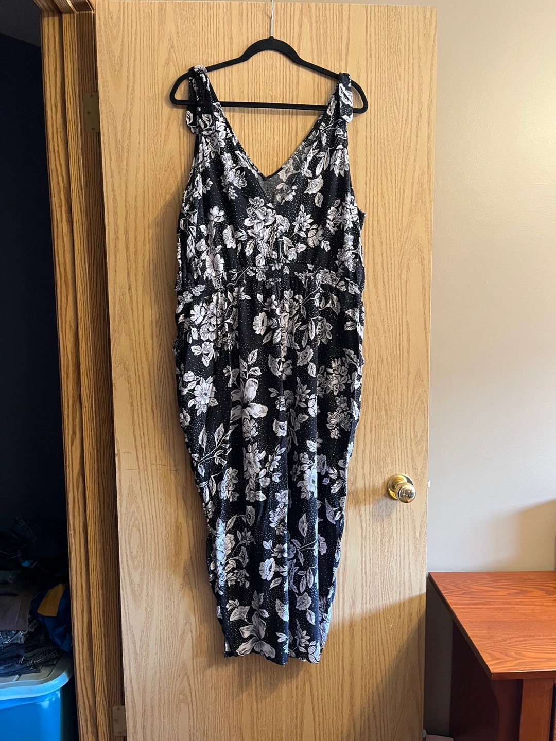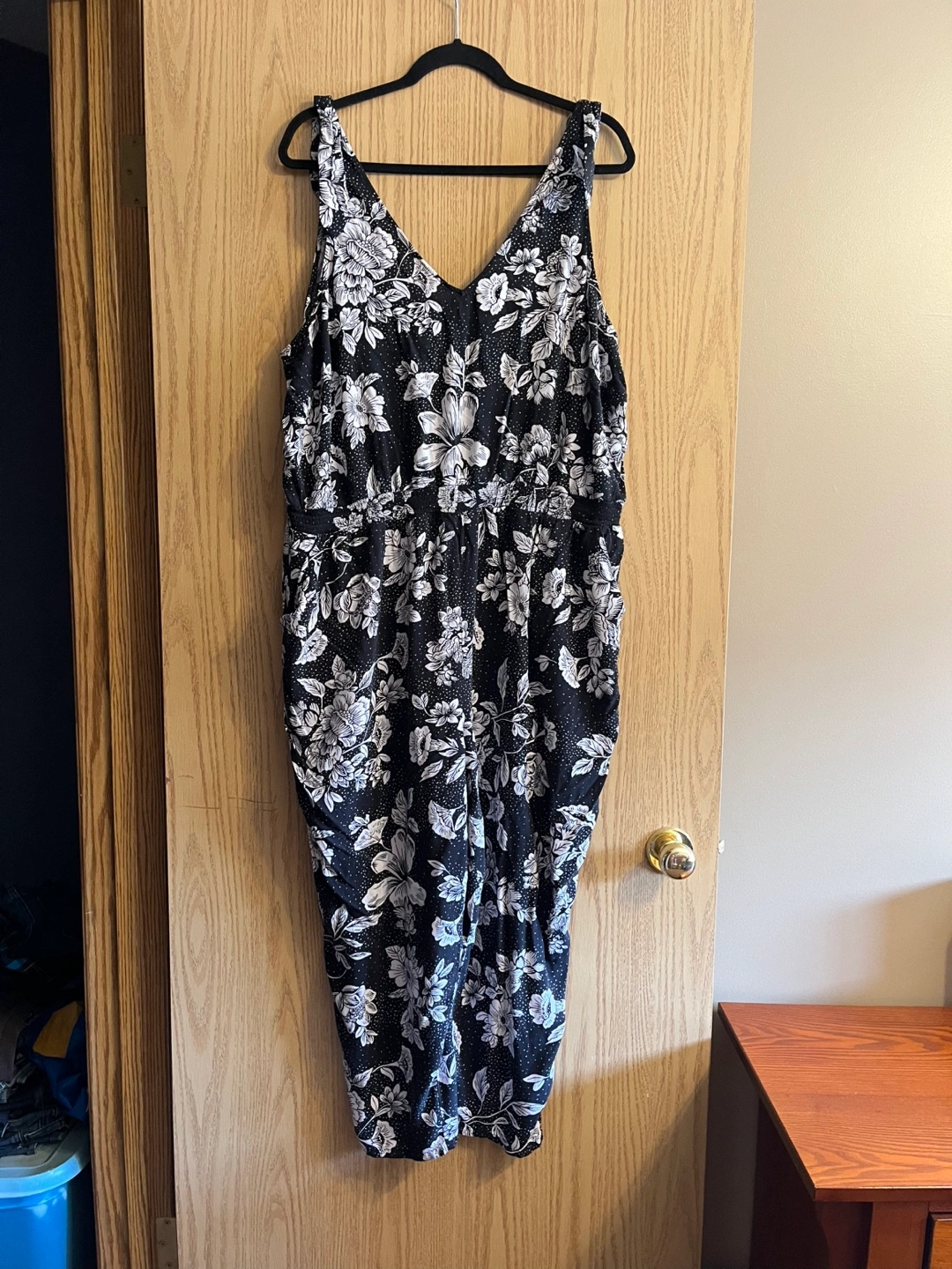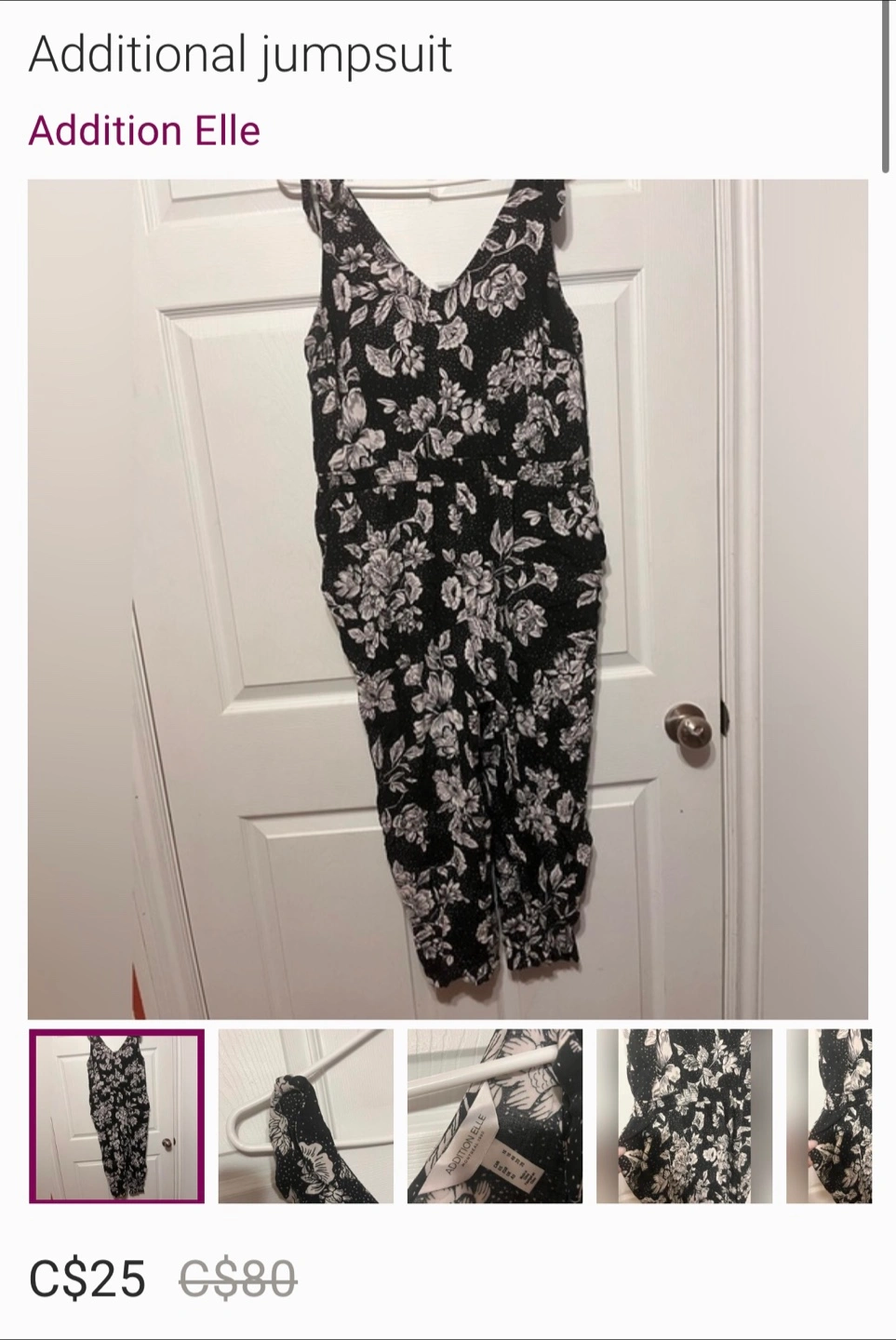 USED IN GREAT CONDITION Addition Elle Montreal 1980 Black and White floral jumpsuit with pockets. Size 22. 100% Viscose. Measurements are shown in the pictures. Last picture is for price reference only. Cross posted.