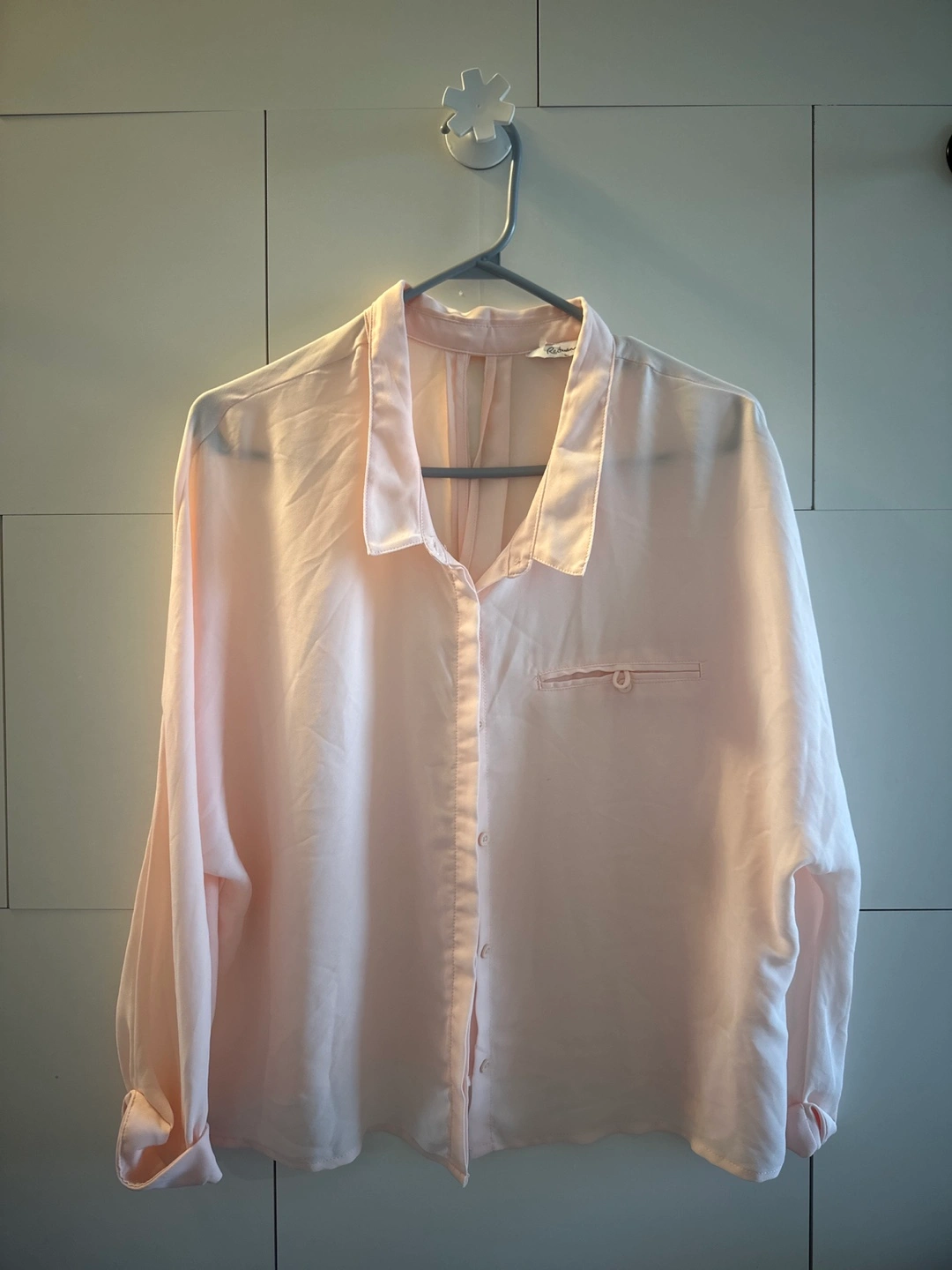 A lovely, light pink long-sleeved blouse from Reborn! It's in great condition and ready for a new home. Perfect for layering or wearing on its own