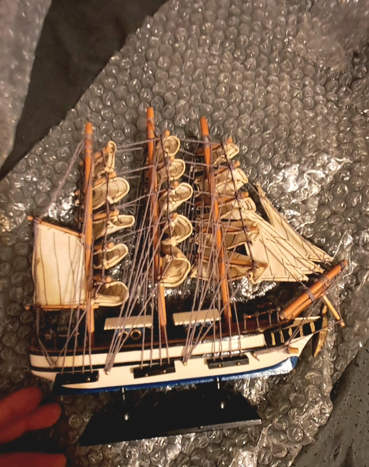 Selling a wooden pirate ship model. It's a charming decorative piece that would look great on a shelf or desk. The ship is in good condition and ready for a new home!