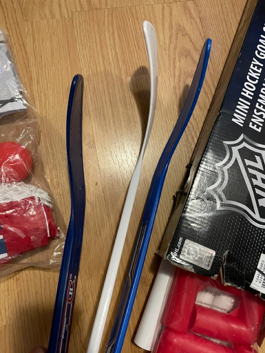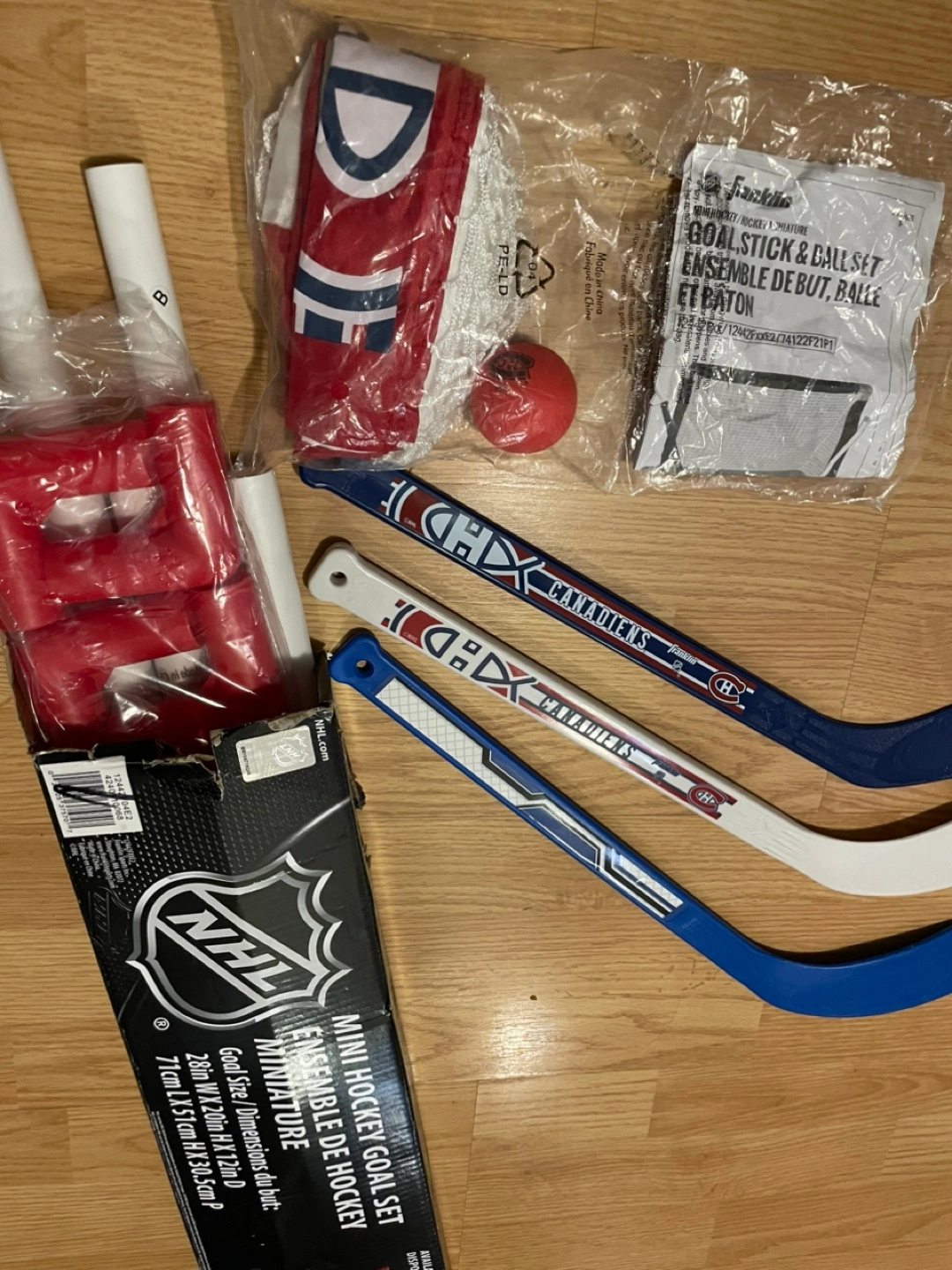 Get your little hockey fan started early with this BRAND NEW NHL Montreal Canadiens mini hockey set! This set includes a mini hockey goal, THREE mini hockey sticks (one left, one right), and a soft foam mini hockey ball, perfect for indoor play. The set is unopened in its original packaging, ready to bring hours of fun. * Mini hockey goal * Two mini hockey sticks (left and right) * Soft foam mini hockey ball Looking for the perfect gift for a young Habs fan? This mini hockey set is a guaranteed winner. And remember, if the ad is still up, it's still available! So, let's get your future NHL star started today!
