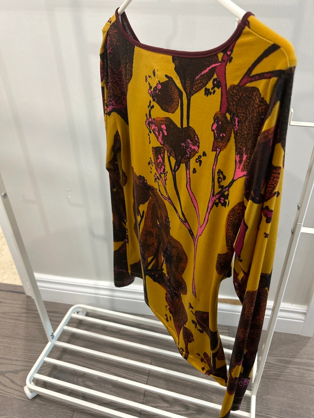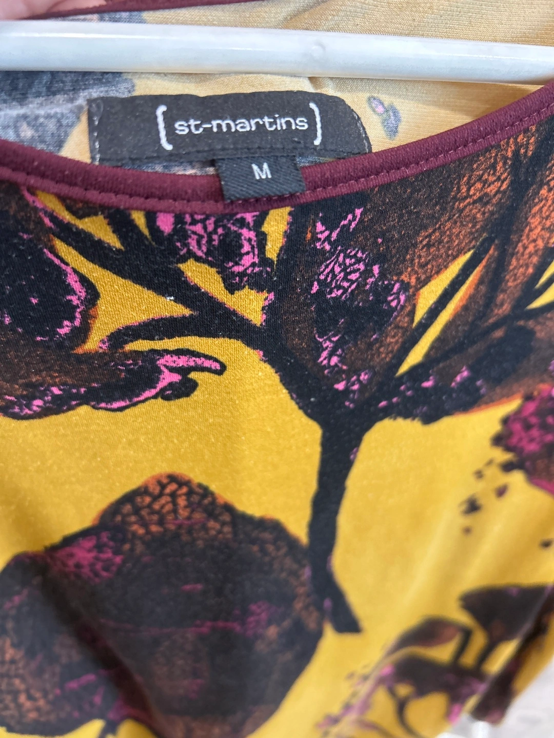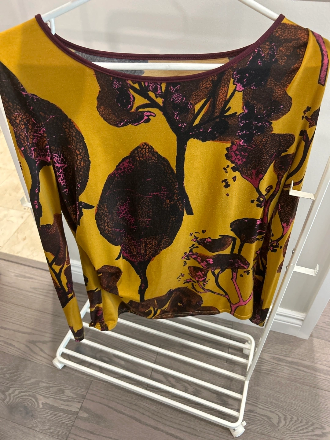 A lovely long-sleeved top from St. Martins! It features a unique floral design on a mustard-yellow background and is a size medium