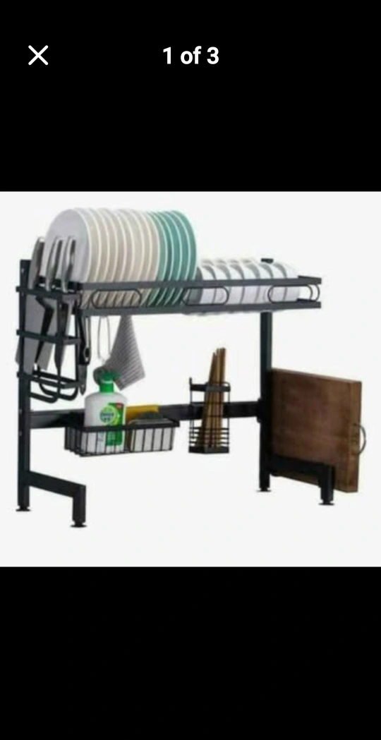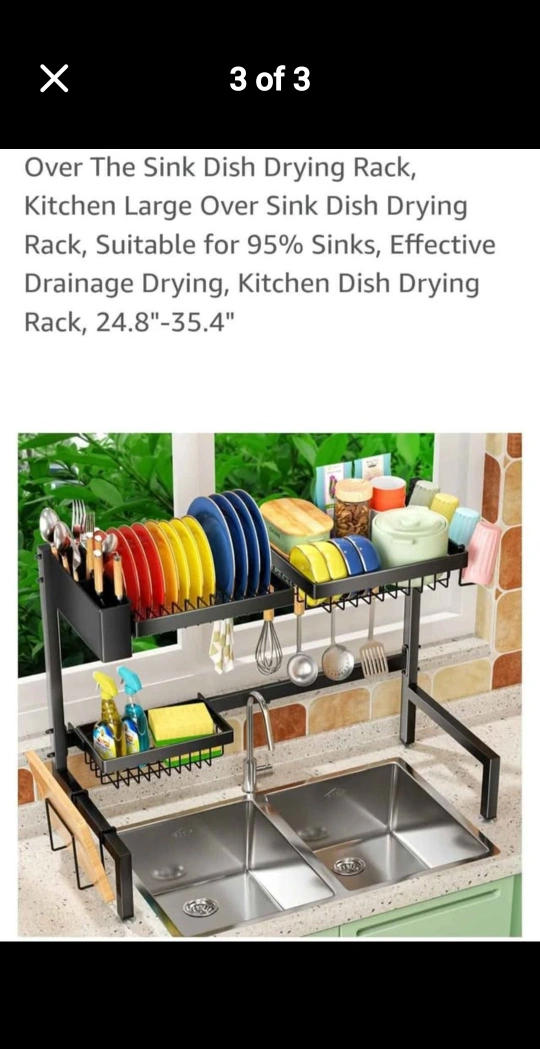 I'm selling an over-the-sink dish drying rack. It's a kitchen large over-sink dish drying rack, suitable for 95% sinks, with effective drainage drying. The rack measures 24.8"-35.4". adjustable width to fit sink New in box