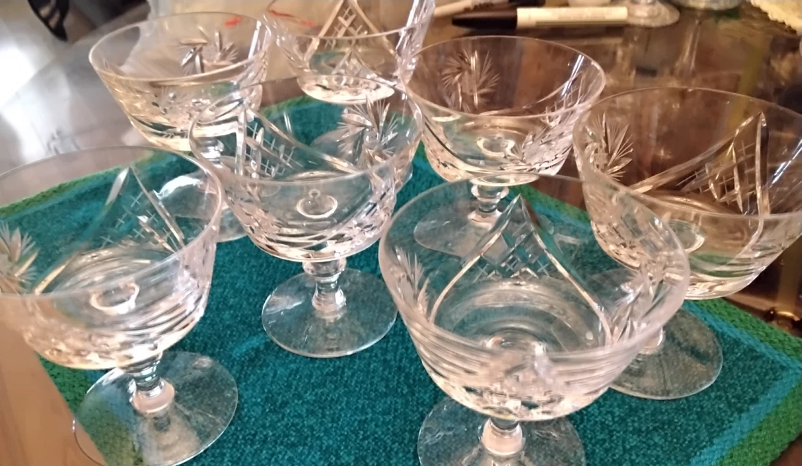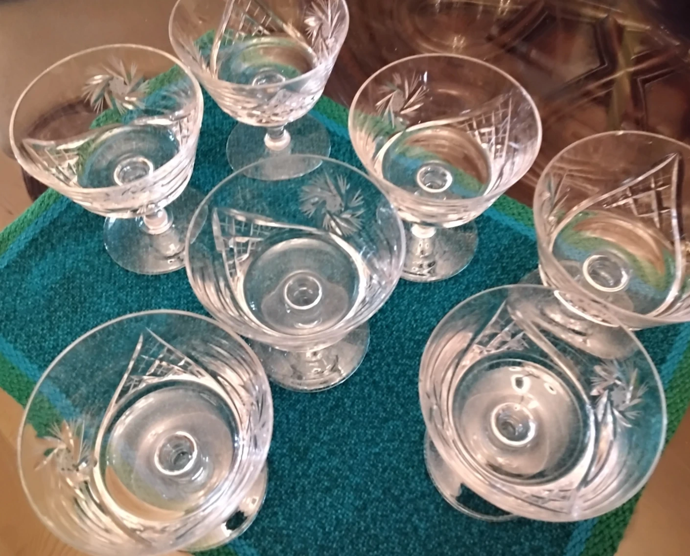 Beautiful Vintage Pinwheel Crystal Ice Cream Footed Cups x 7 and 8 Pinwheel Crystal Side Plates All in Beautiful Condition Asking $ 140.00 for all selling together not Seperates Please Pickup Clarkson Area Mississauga Via Enclosed Porch for Easy Viewing or I offer Delivery and or Shipping at Buyers Expense. Accepting Cash or Etransfer Only Please Please take time to view my other Ads