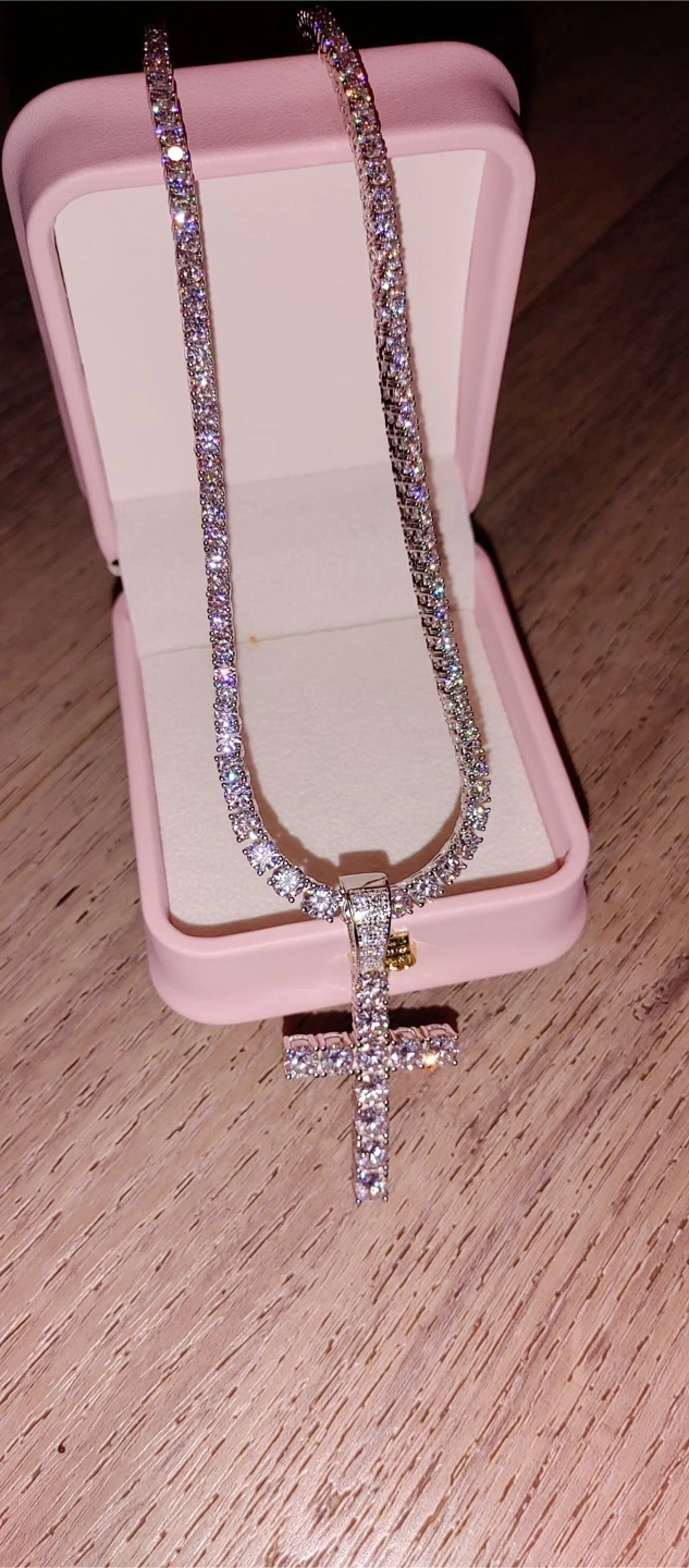 Selling a beautiful diamond cross pendant necklace. It's in excellent condition and comes with its original box. The diamonds are sparkly and eye-catching, making it a great accessory for any occasion Comes with original lab report and lifetime warranty. Can test uponmeetup for authenticity. Pick up only ,Uber delivery or I can mail. Please join me here for all new updates. https://www.facebook.com/share/1c6ABf8TYF/?mibextid=wwXIfr