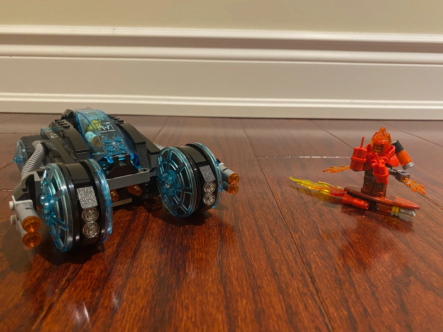 Dual long range missile launcher, mechanized ejector seat can be activated via a button on the back of the car, hand-held mini shooter. Can be reshaped from street mode to hover mode. Comes with original instructions.