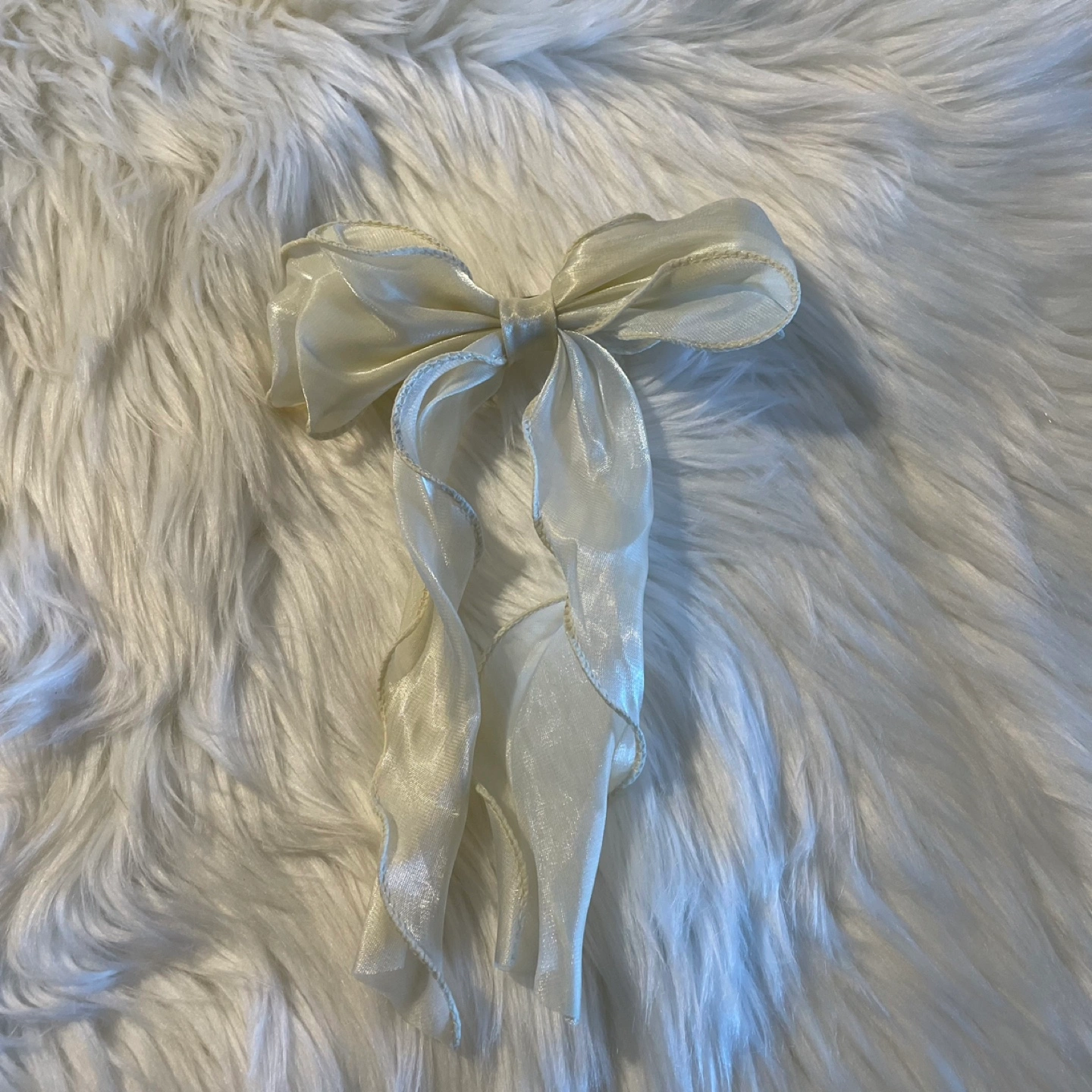 Here's a lovely ivory-coloured hair bow clip! It's in great condition and would be a sweet addition to any outfit Pick up: Suntea on Kingsway Royal Oak skytrain station Metrotown Mall