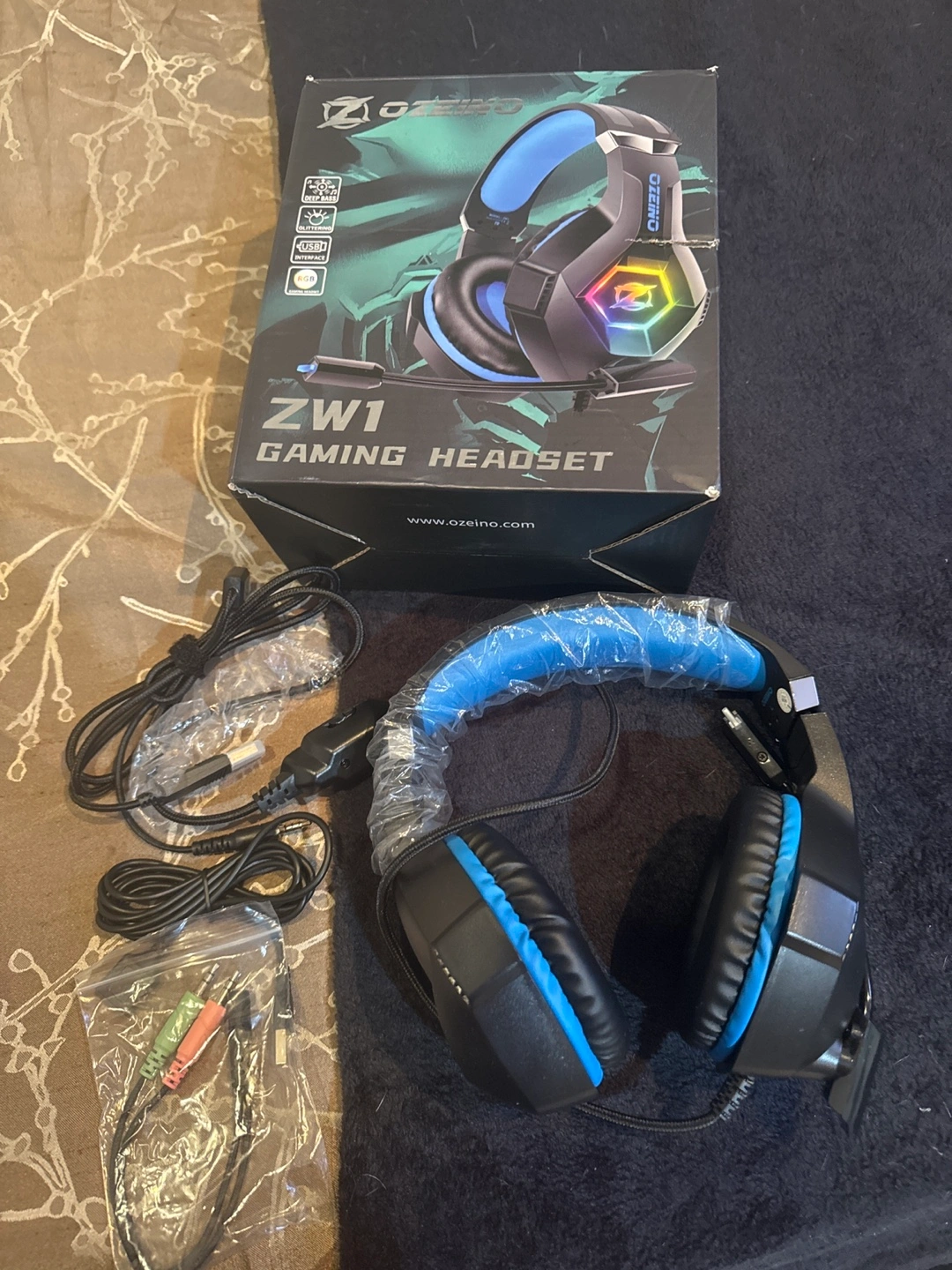 Selling an Ozeino ZW1 gaming headset! It's in like-new condition and comes with all original components. The headset features deep bass, a USB interface, and RGB lighting. The box is included!