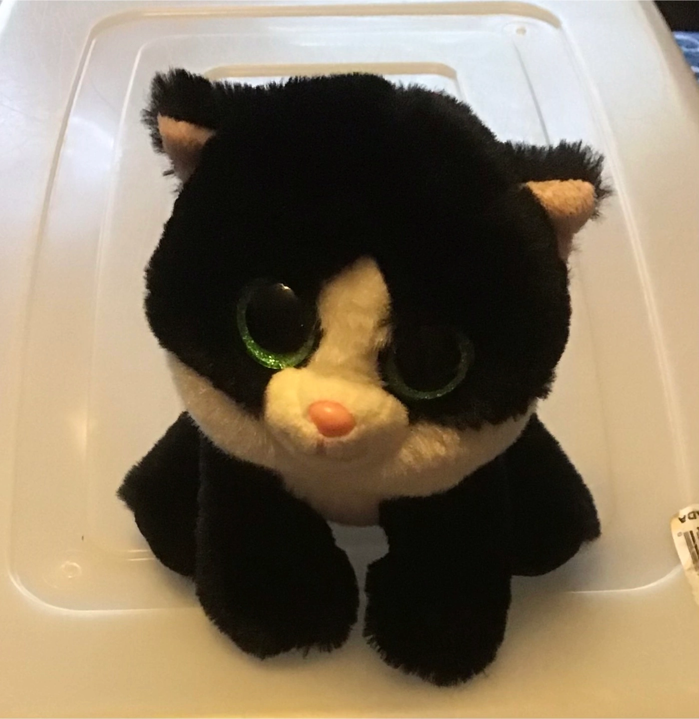 Selling a cute Ty Beanie Boo named Patches! It's a black and white cat with big, sparkly green eyes. Perfect for any Beanie Boo collector or cat lover. 🤩