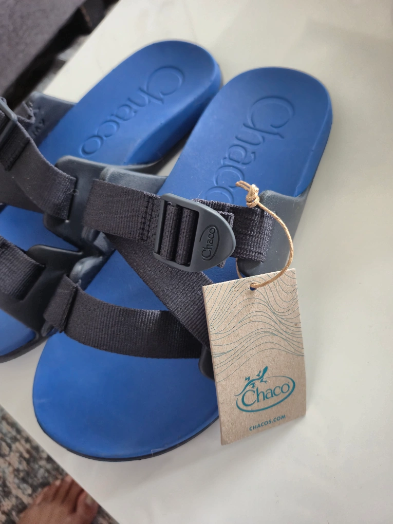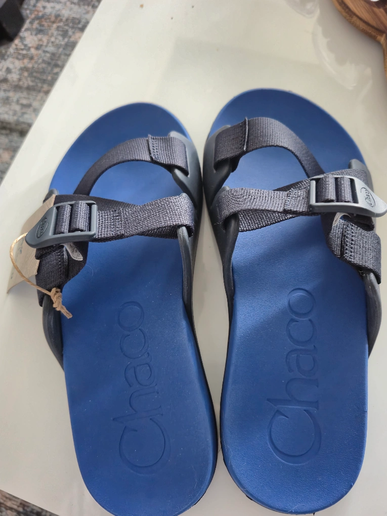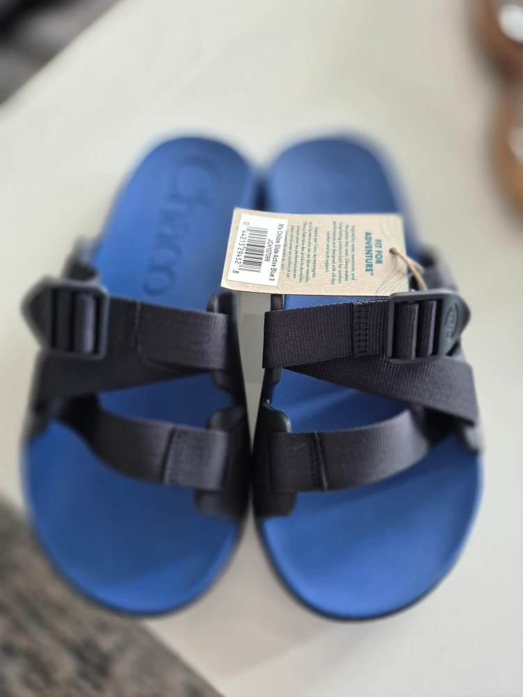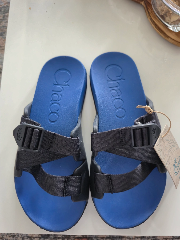 I'm selling a pair of brand new Chaco Chillos slides in blue, size 9. They come with the original box! These are great for adventure or just kicking around. Super comfy and ready for a new home