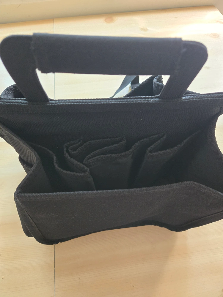 Selling a handy black tool bag. It has multiple compartments inside, perfect for organizing your tools. It's in good condition and ready to help with your next project!