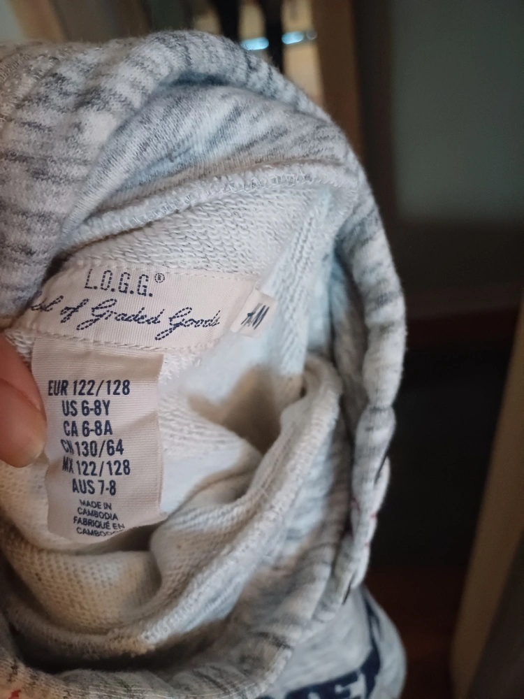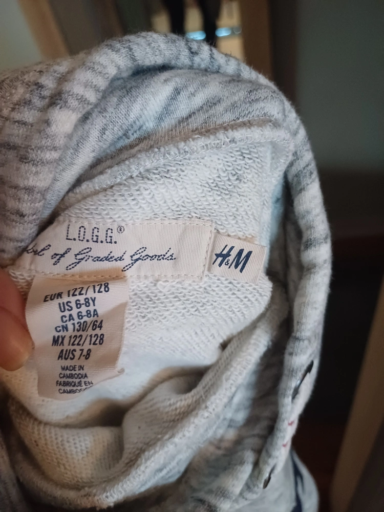 Free comfy hoodie from H&M's L.O.G.G. line! It's a kids' size, fitting ages 6-8 years (US size). The hoodie has a cool athletic design and a handy front pocket. Perfect for keeping your little one warm and stylish!