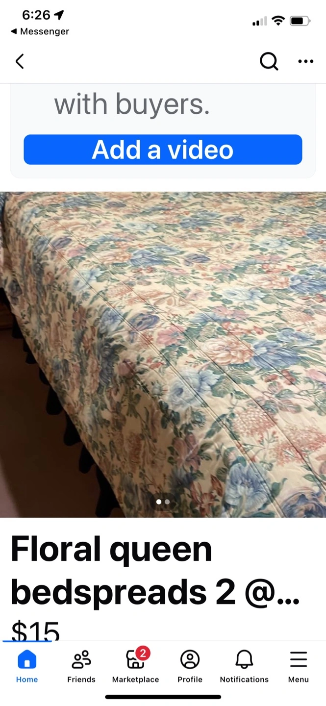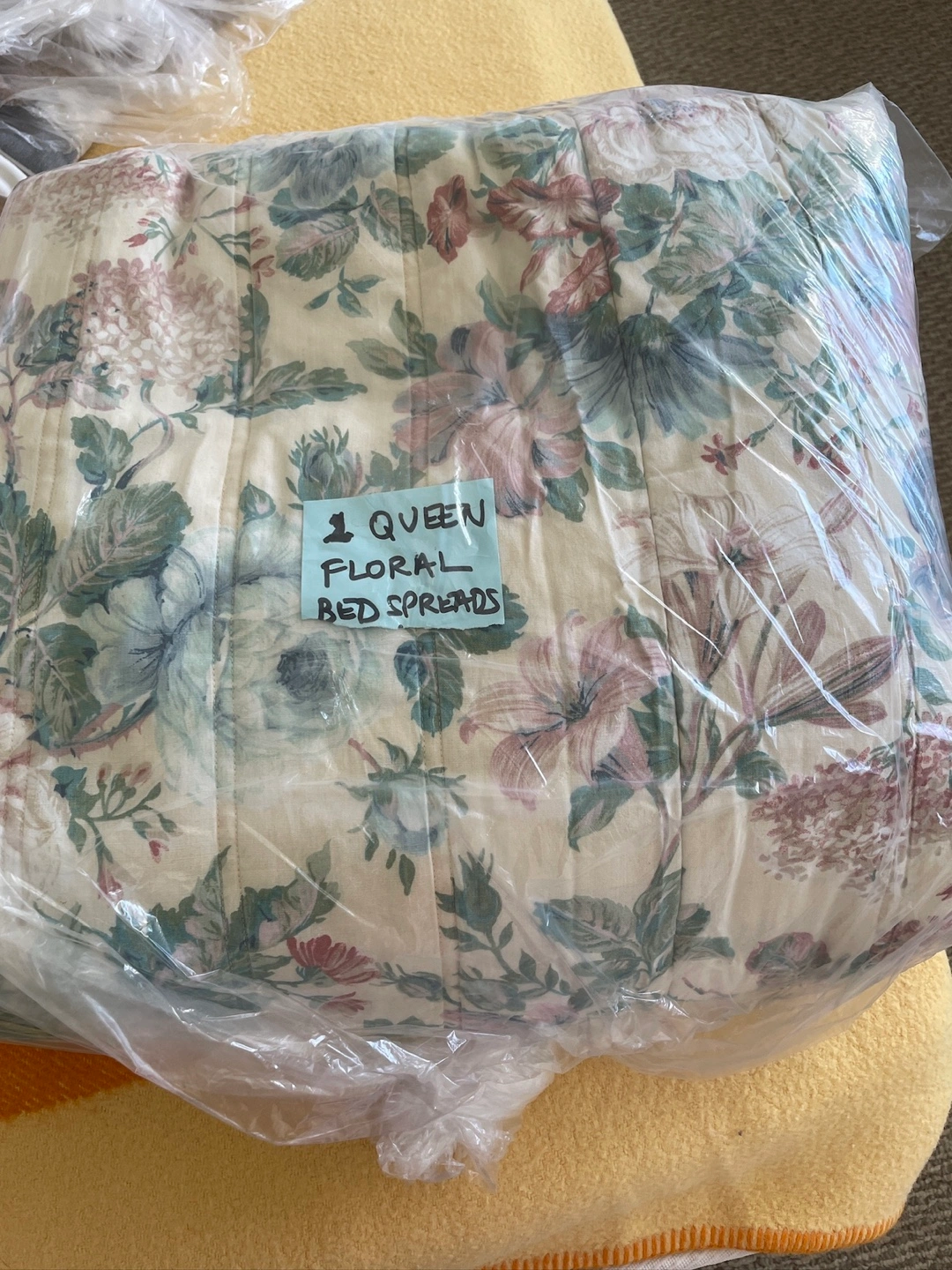 Selling queen-sized floral bedspread. It's a lovely pattern and would be a great addition to any bedroom!