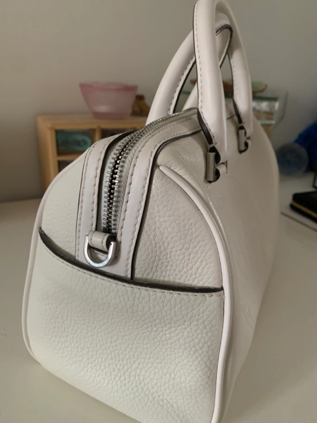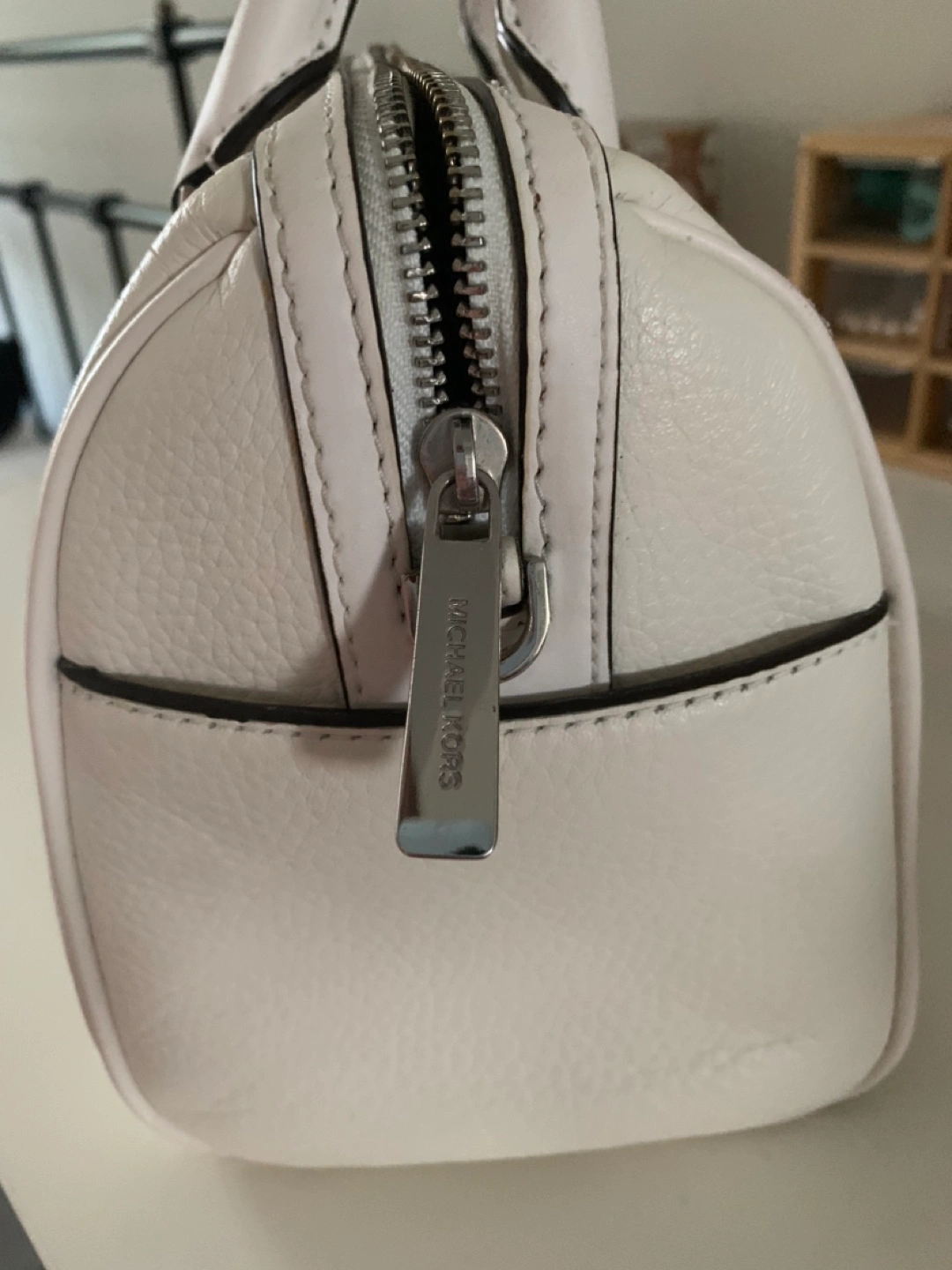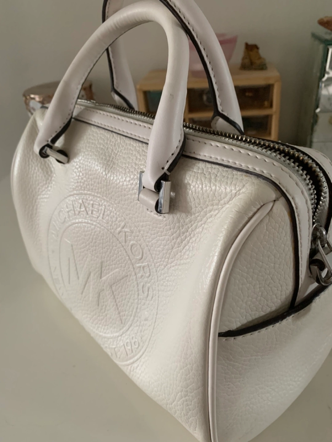 Stylish MK satchel/crossbody bag in white leather. It's a classic design & a GREAT summer colour. Well taken care of. In good condition.