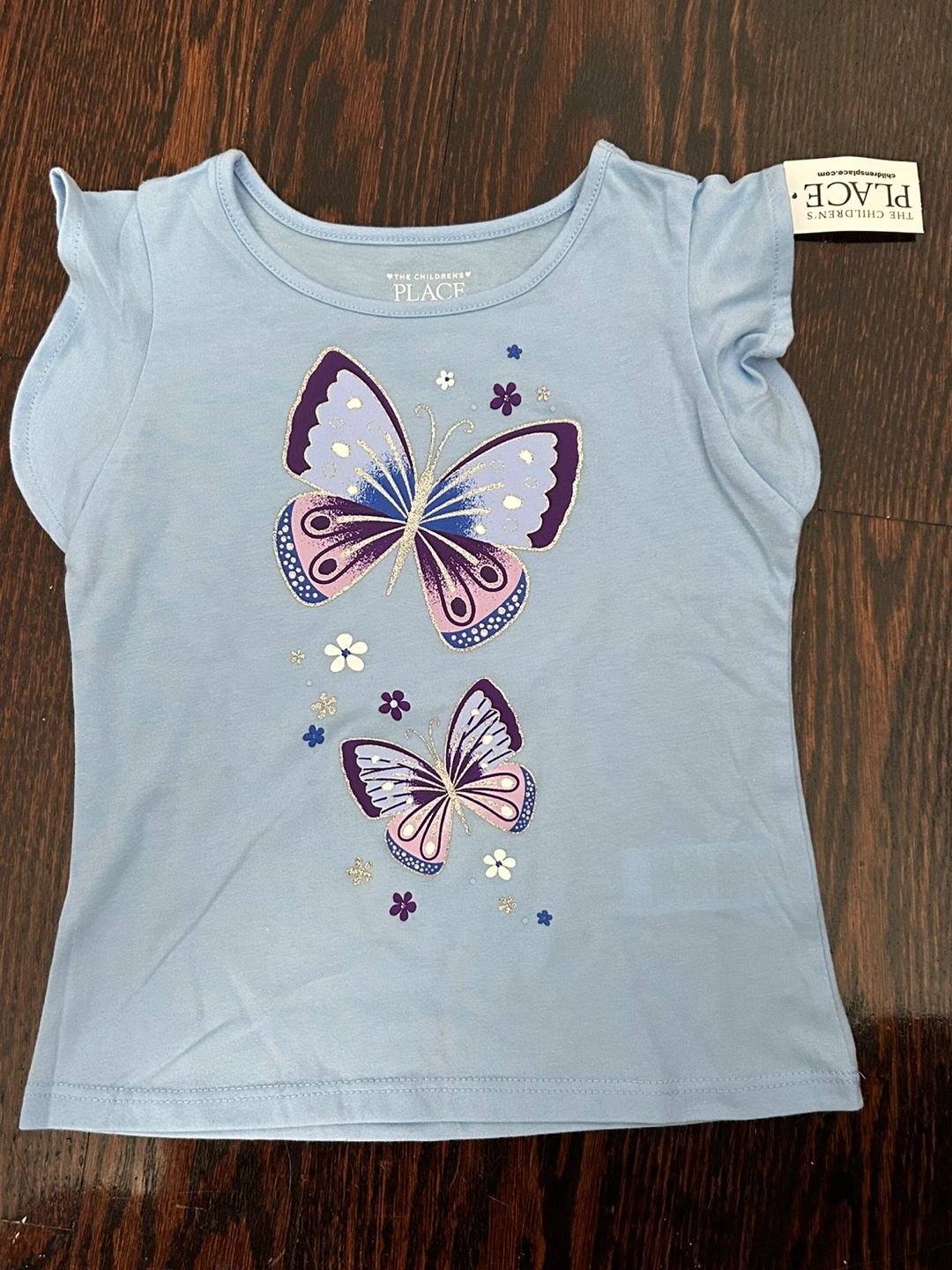 Brand new with the tags on! A cute light blue t-shirt from The Children's Place, perfect for your little one! This shirt features a lovely butterfly design with purple and silver accents. It's a size 3T